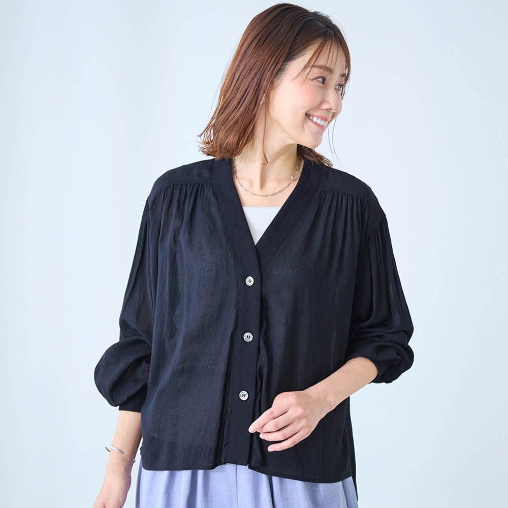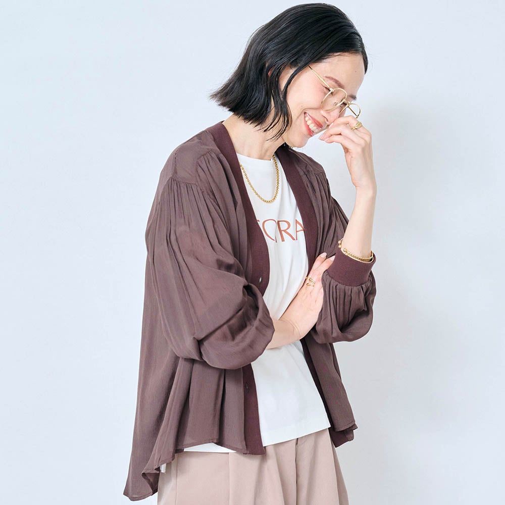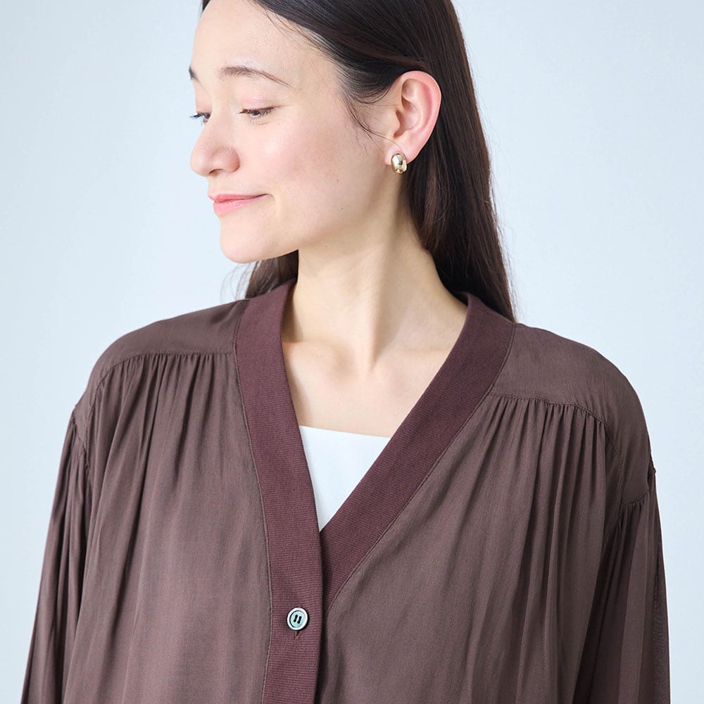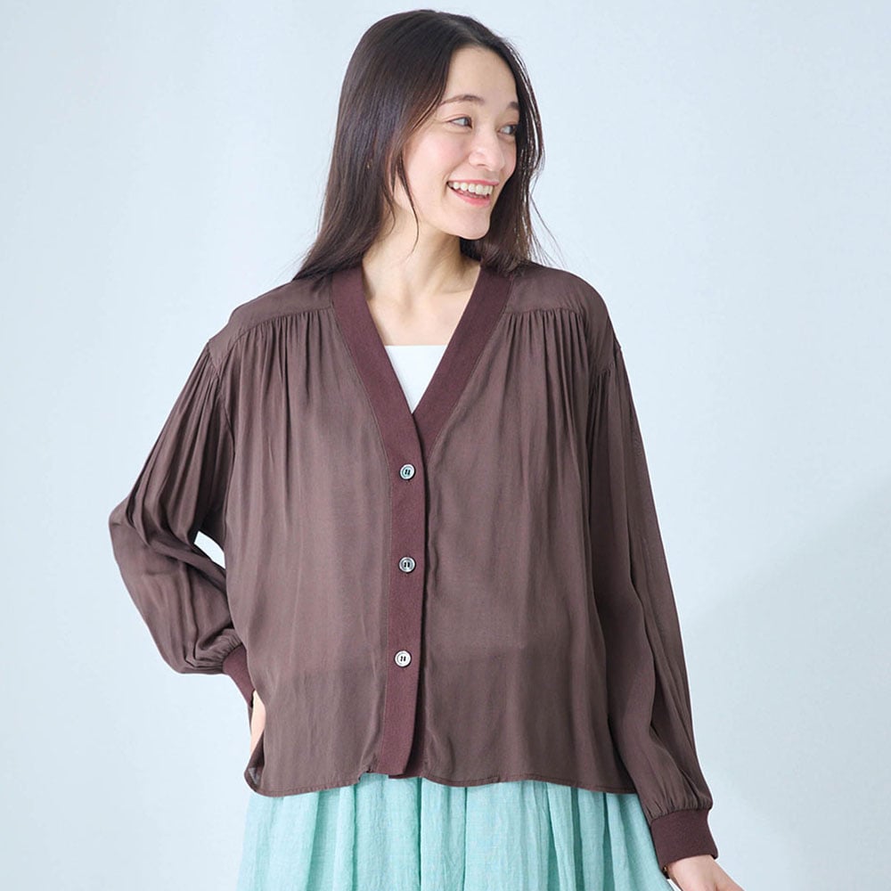 ・シアーな布帛素材とカットソーリブをドッキングしたカーディガン