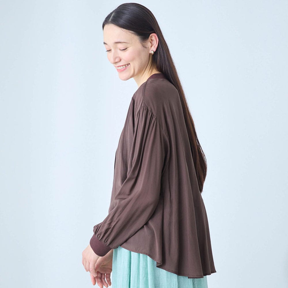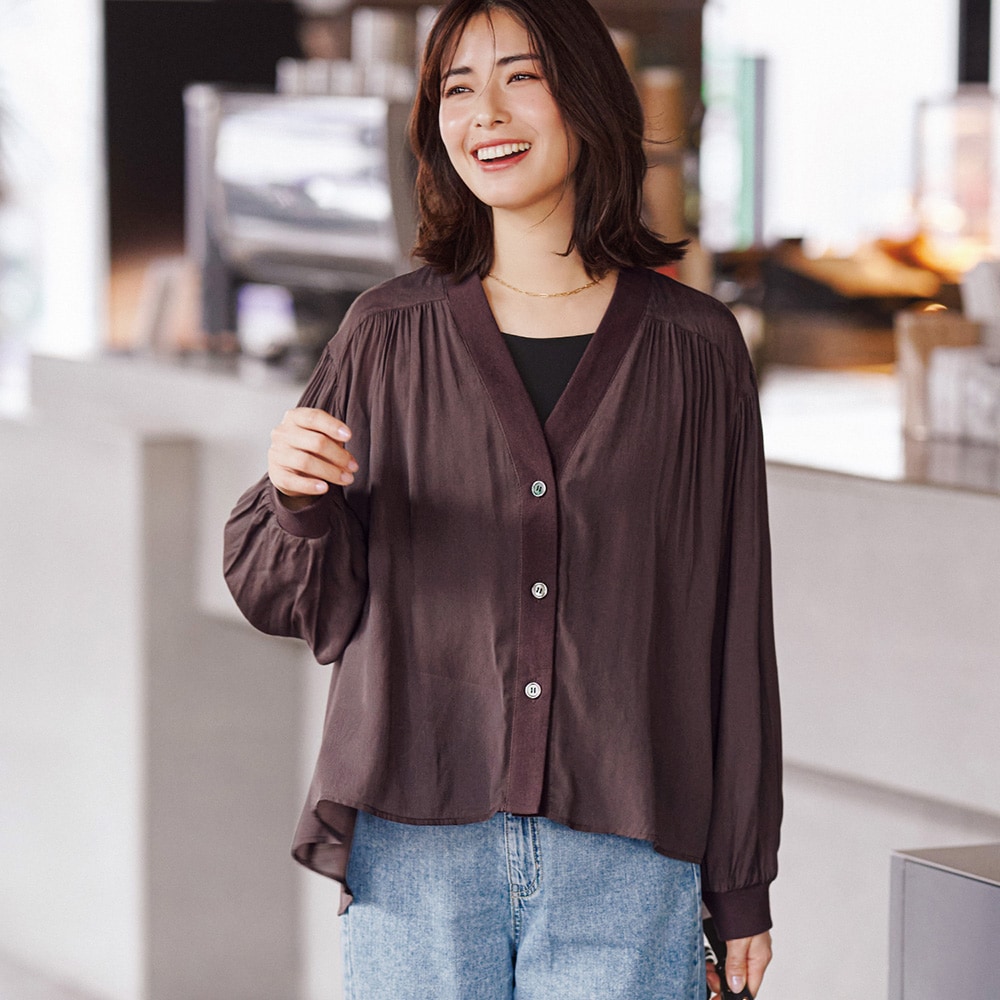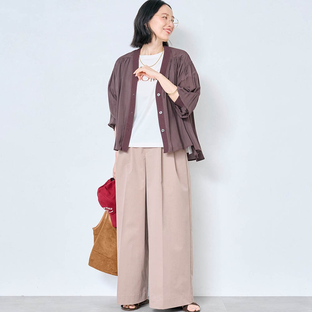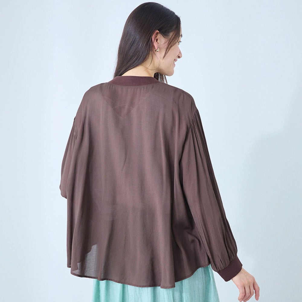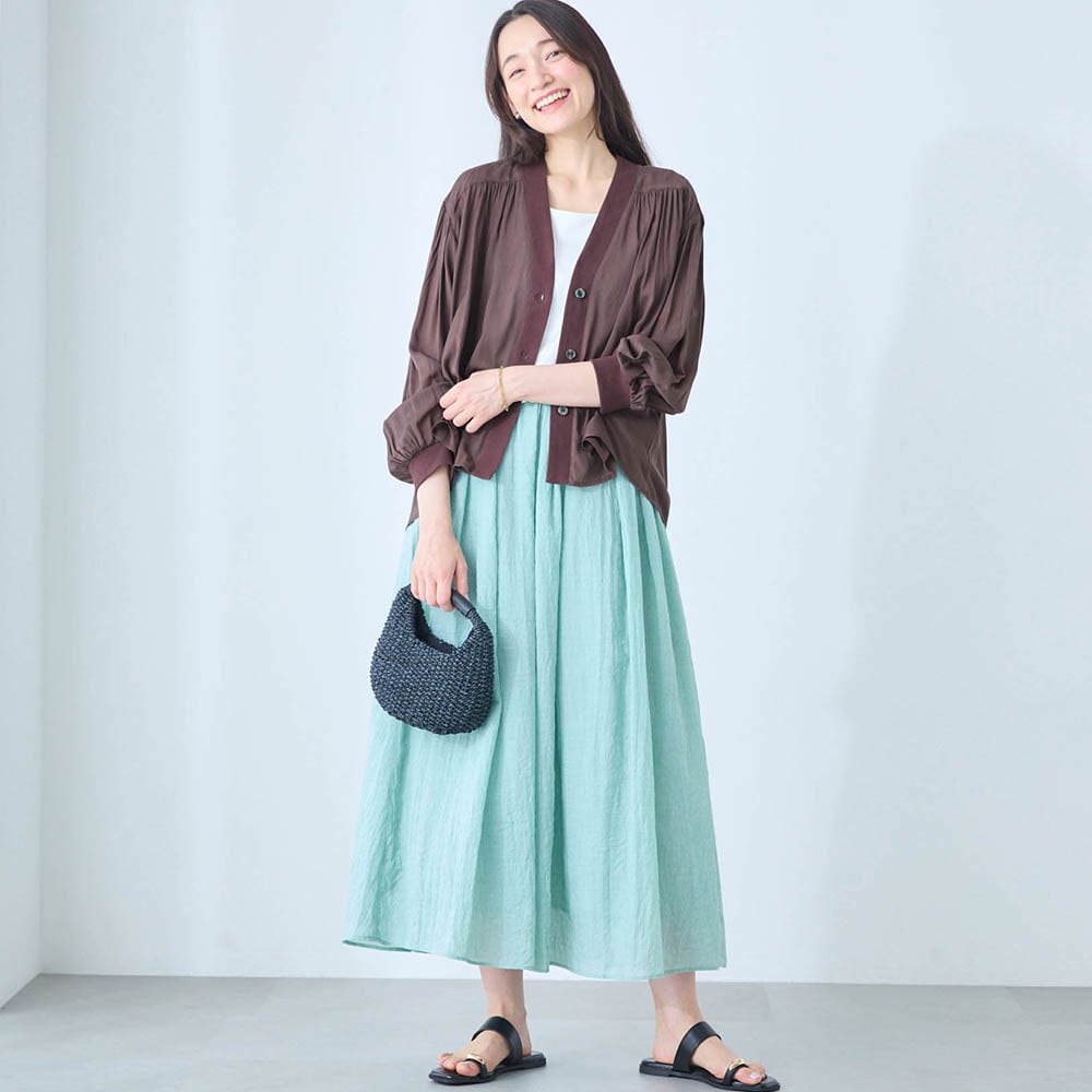 ・シアーな布帛素材とカットソーリブをドッキングしたカーディガン
