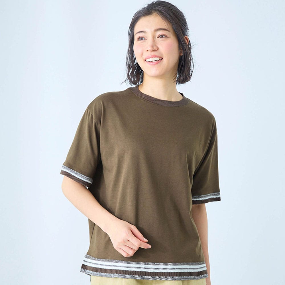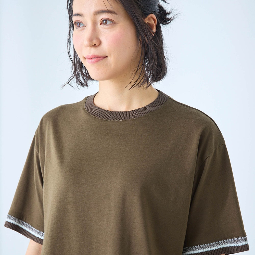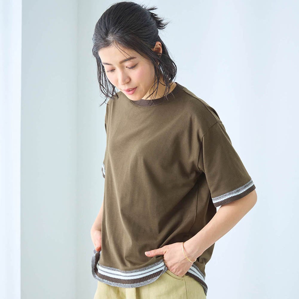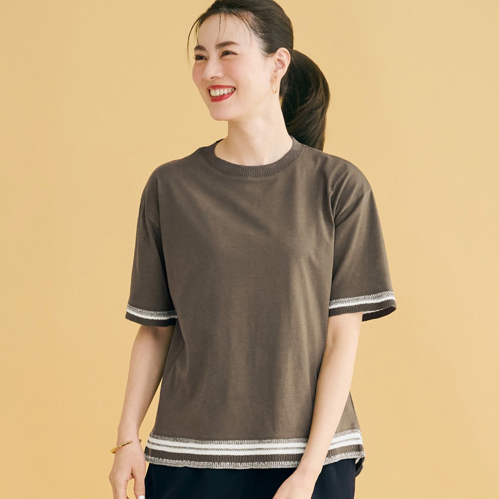 ・首もとや袖口、裾にニット生地を使用した、こだわりのTシャツ