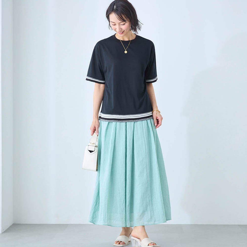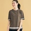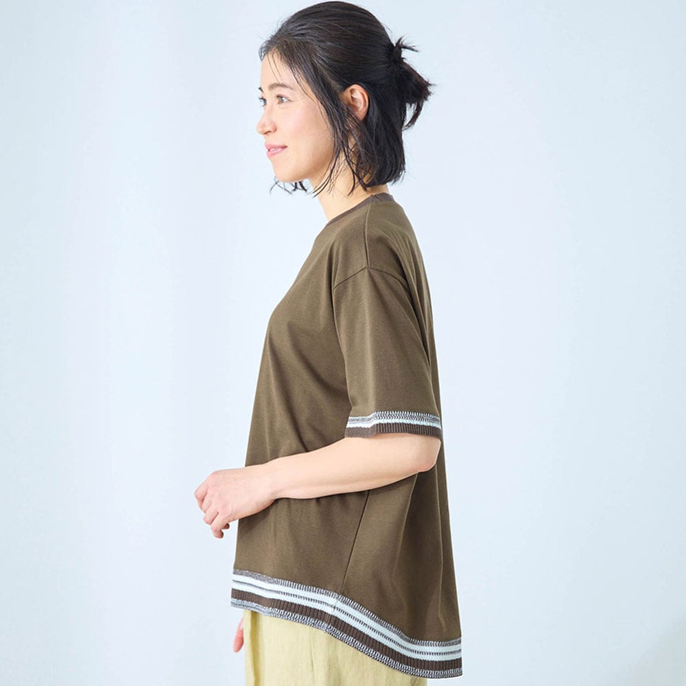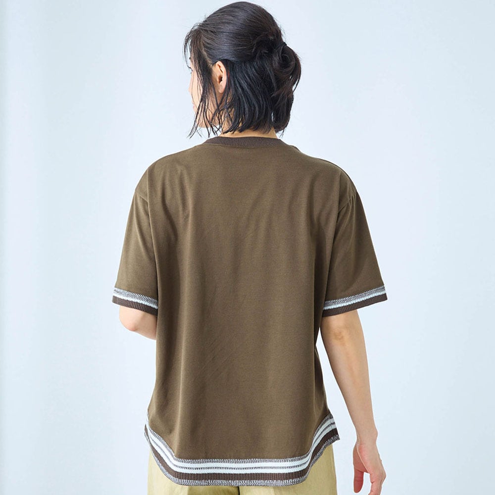 ・首もとや袖口、裾にニット生地を使用した、こだわりのTシャツ