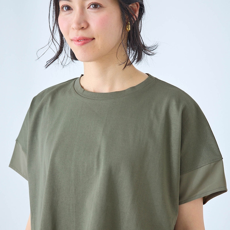 袖口や裾をシアー感のある素材に切り替えたデザイン