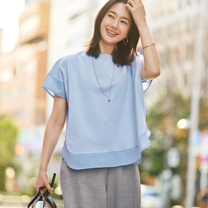 • 袖口や裾をシアー感のある素材に切り替えたデザイン