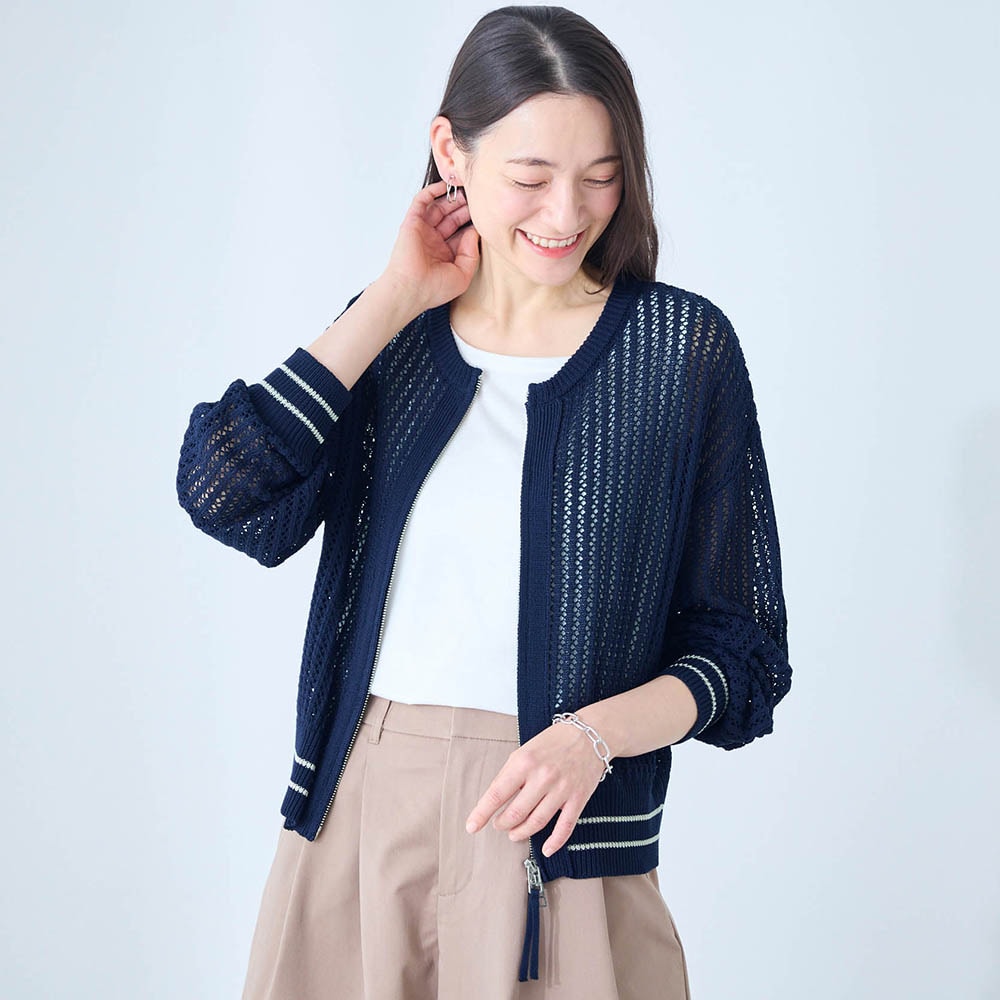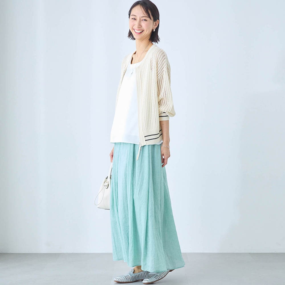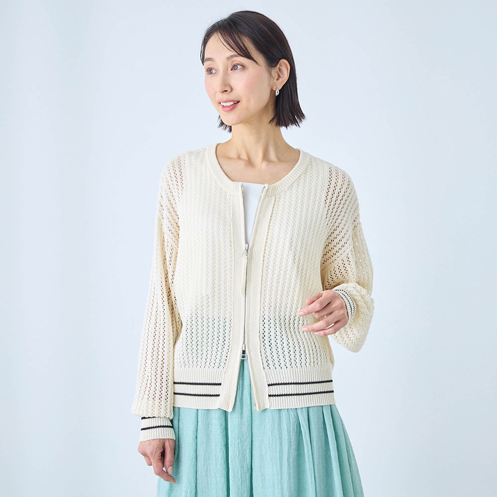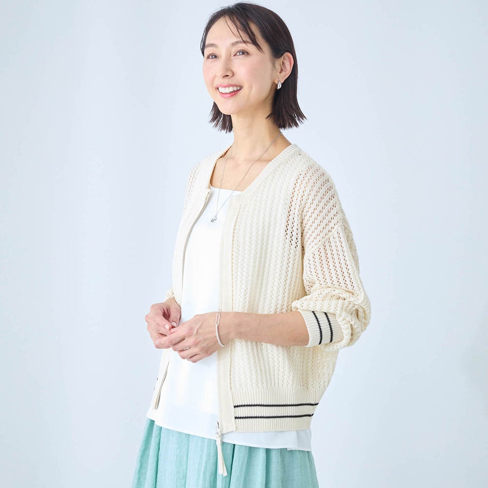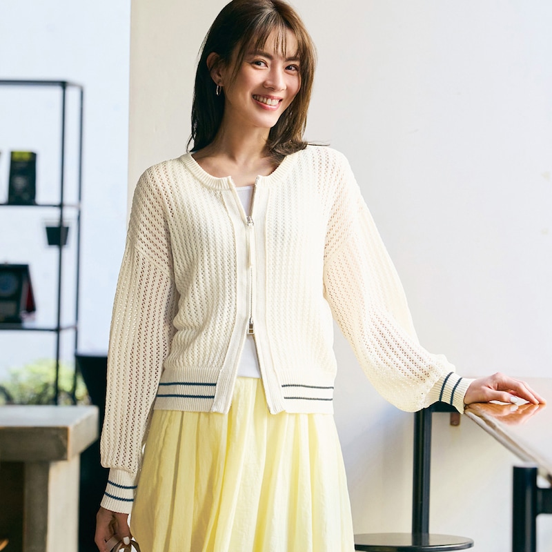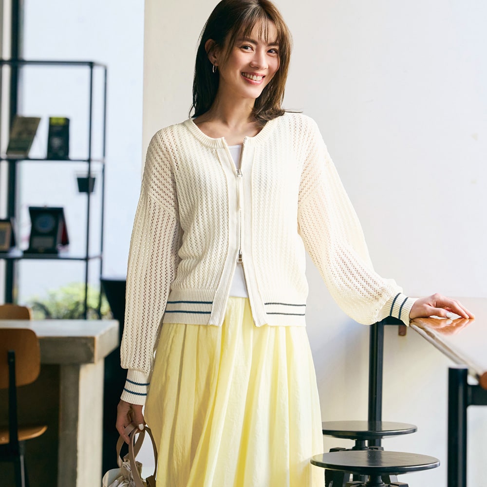 • 肌がのぞく透かし編みで新鮮な着こなしに