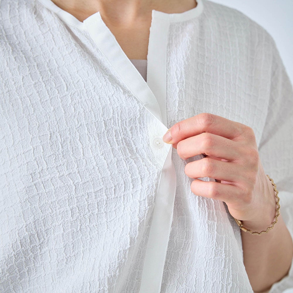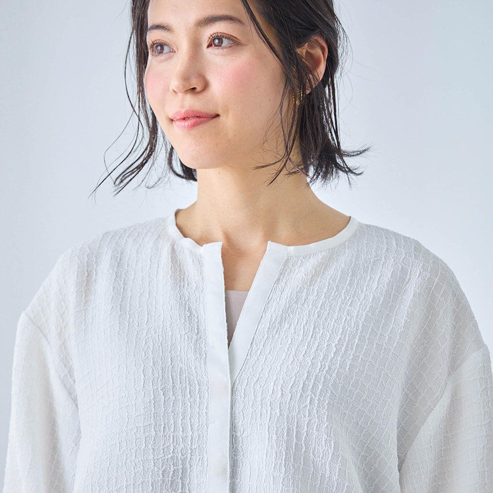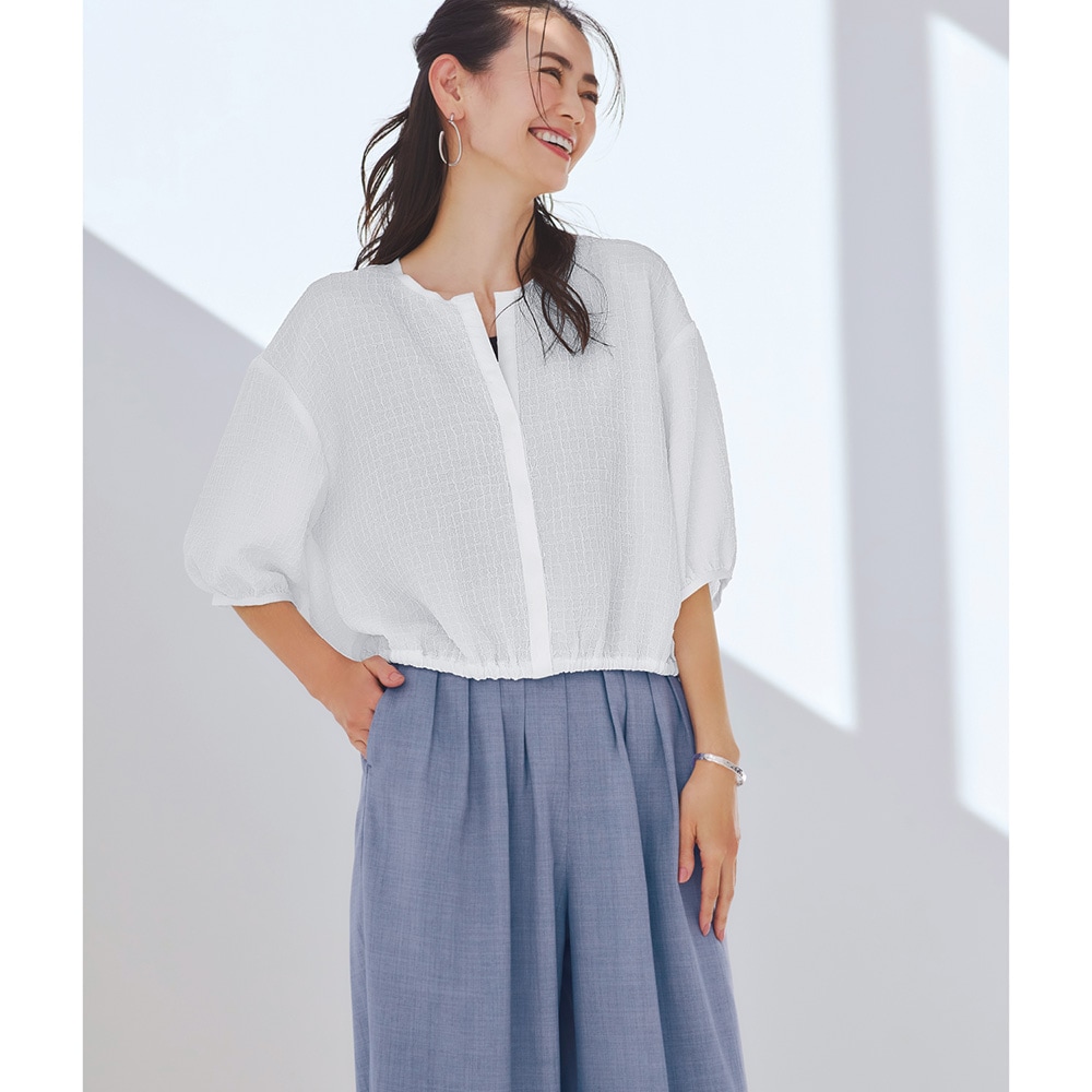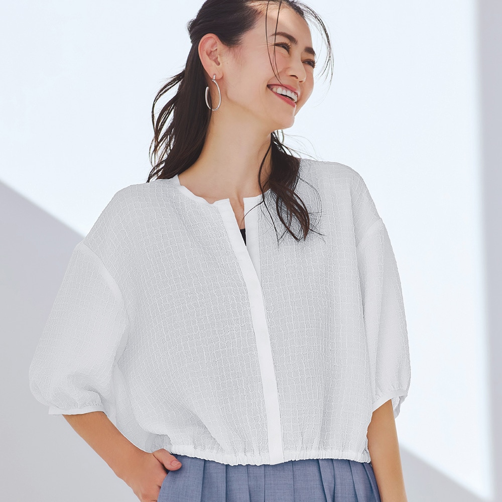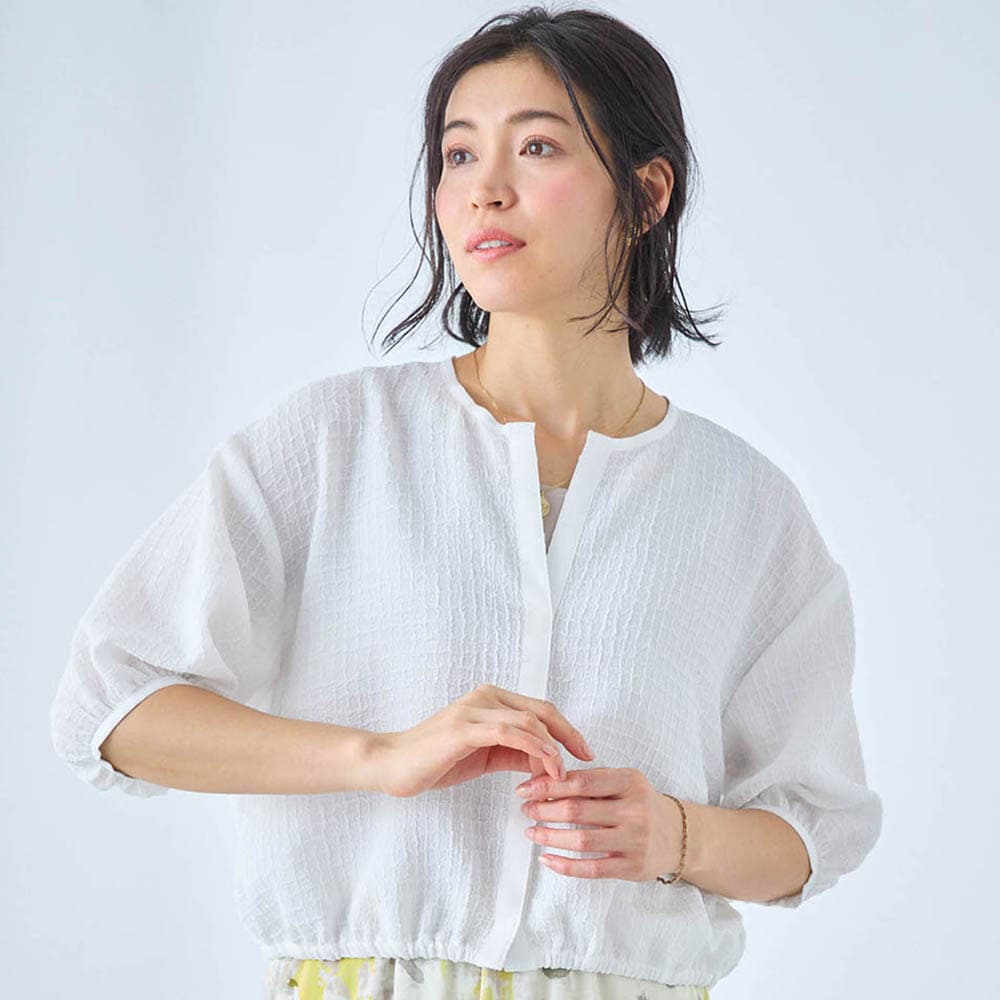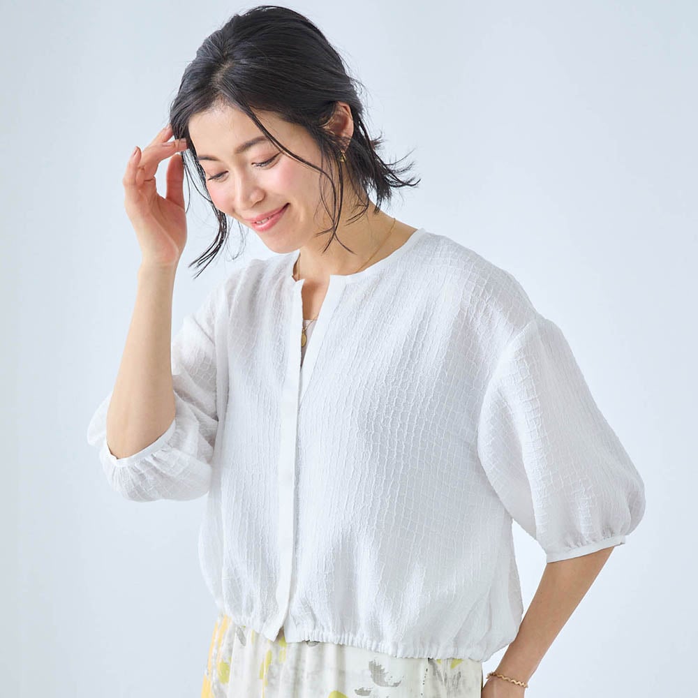 ・涼やかに着られるシアーな素材のシャツブルゾン