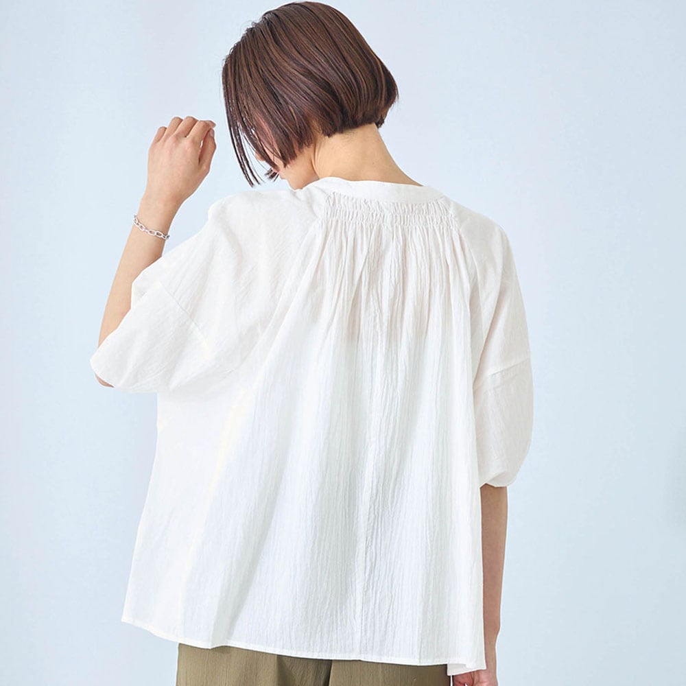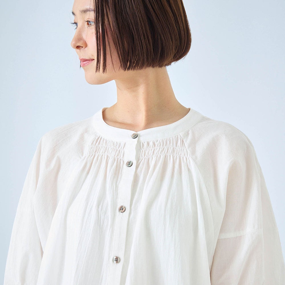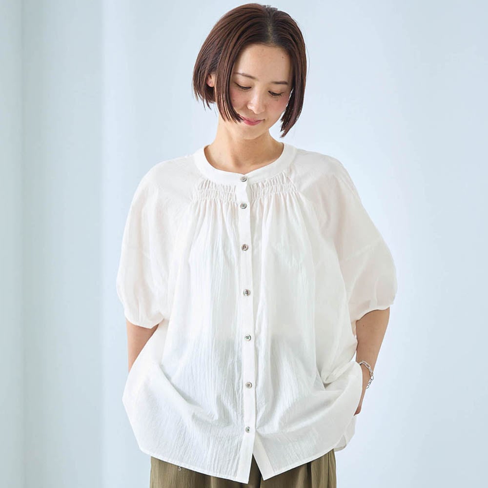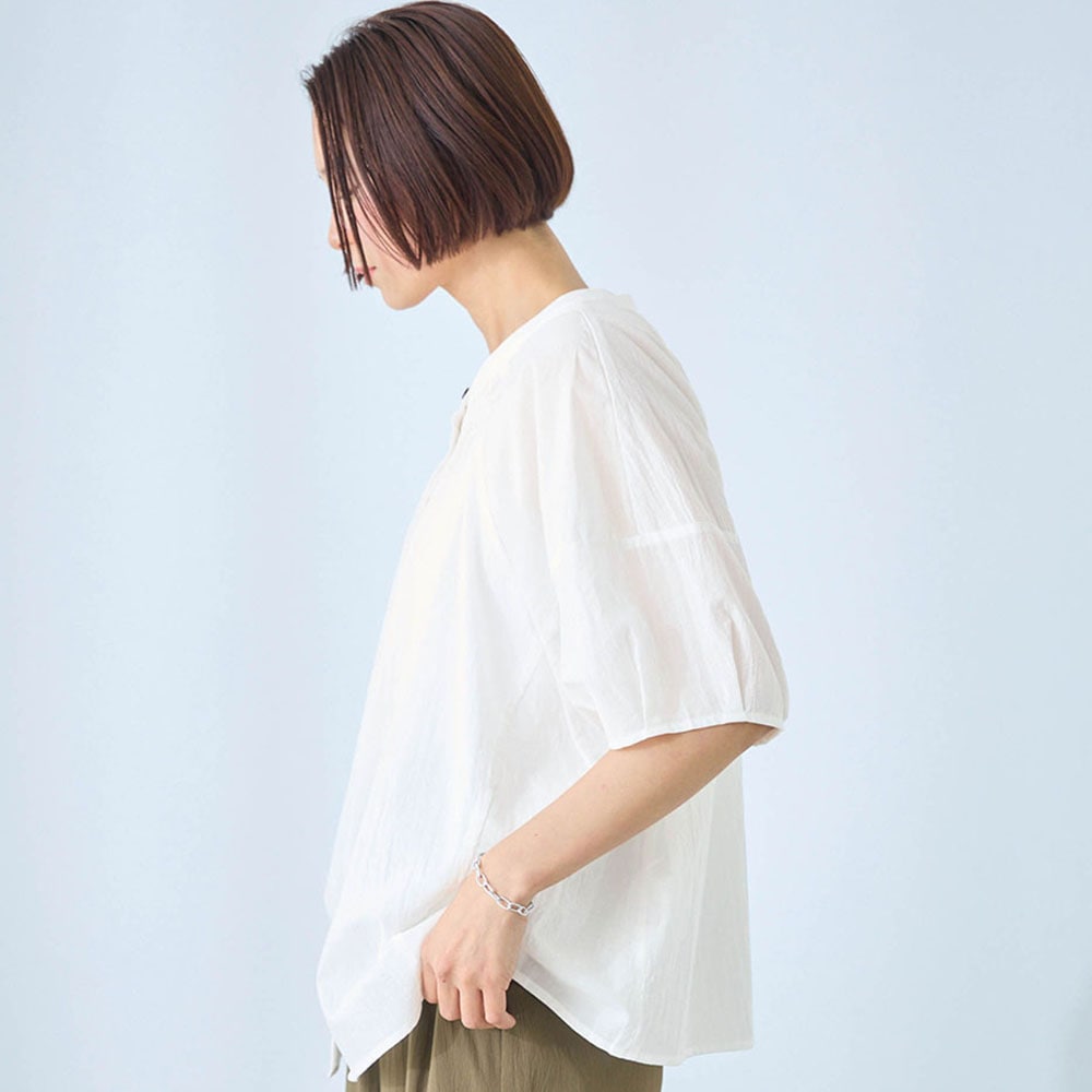 気になる二の腕をカバーする長めのバルーンスリーブ
