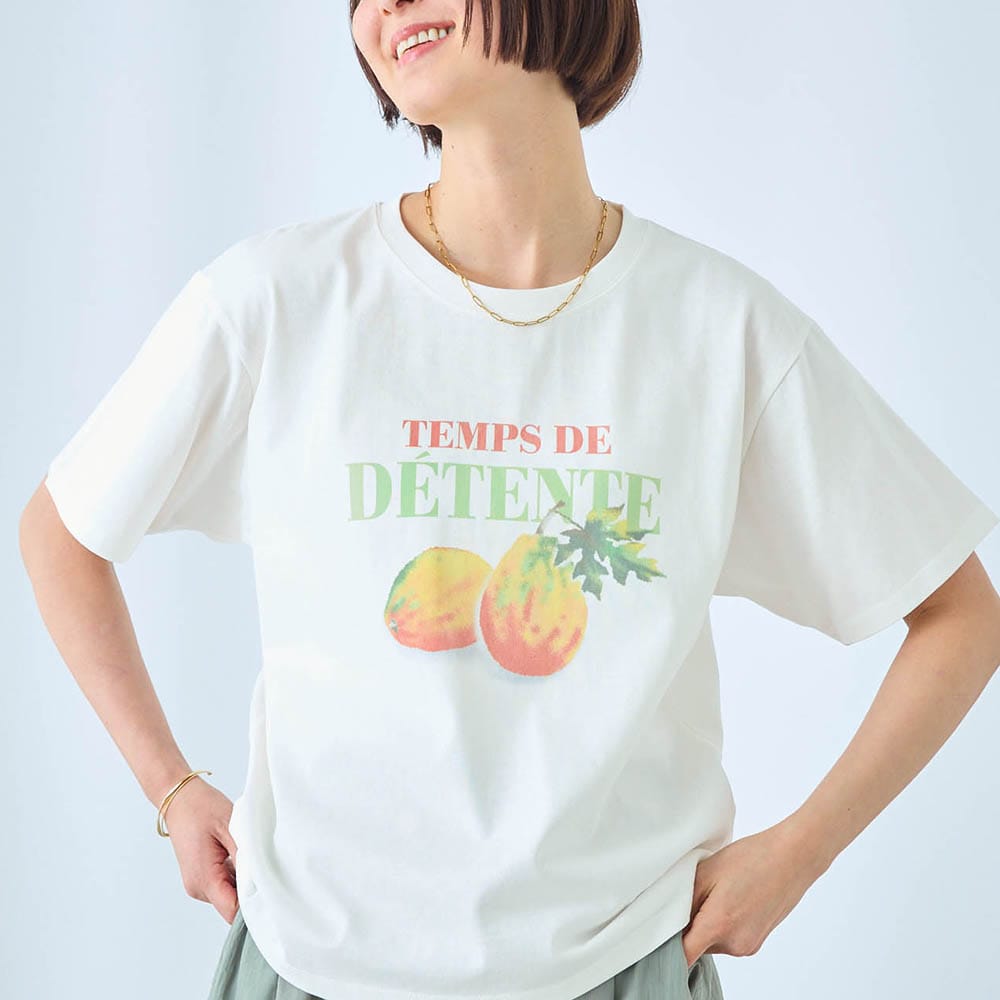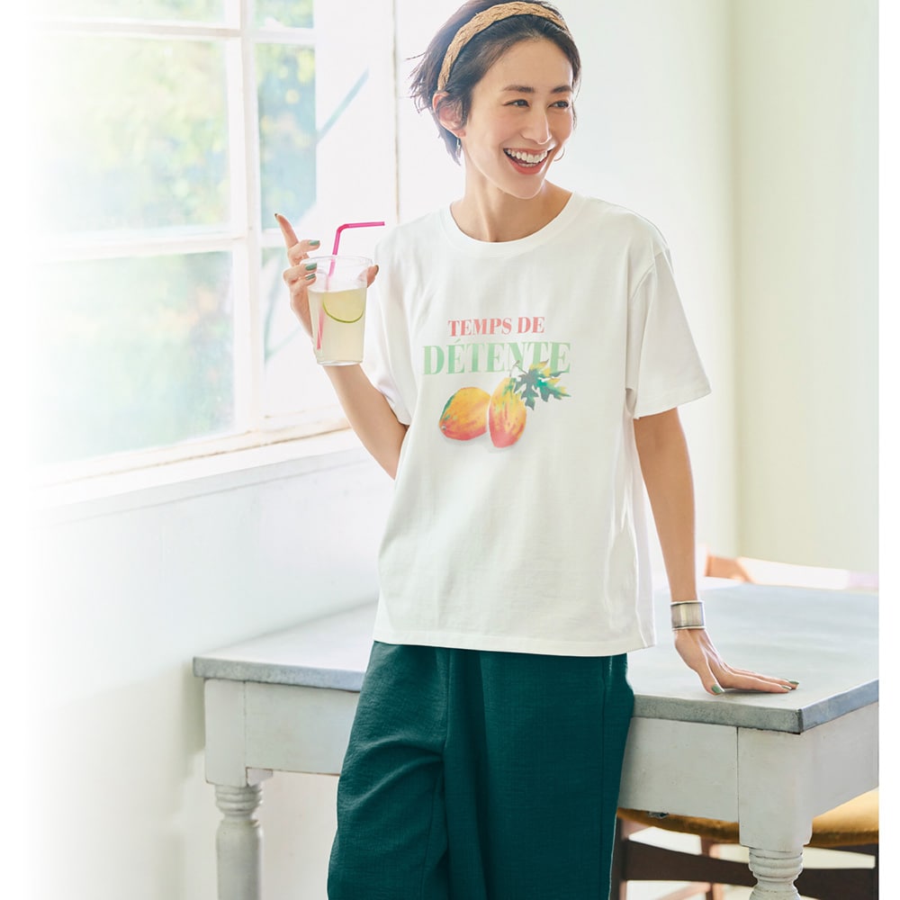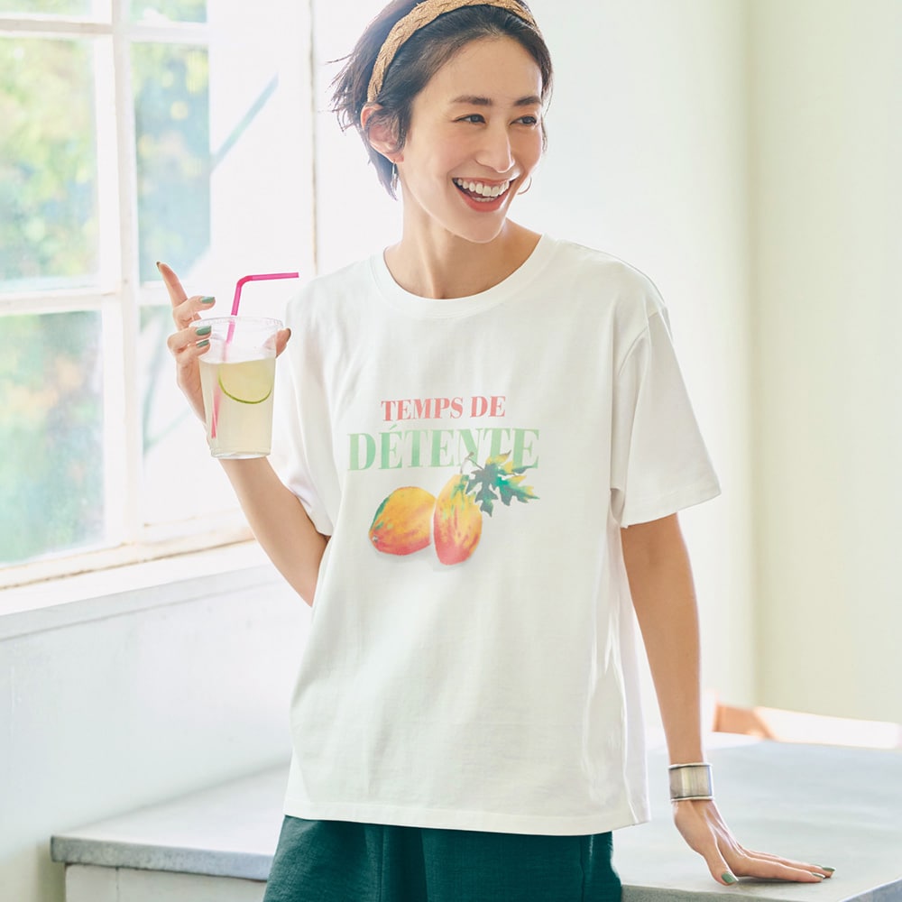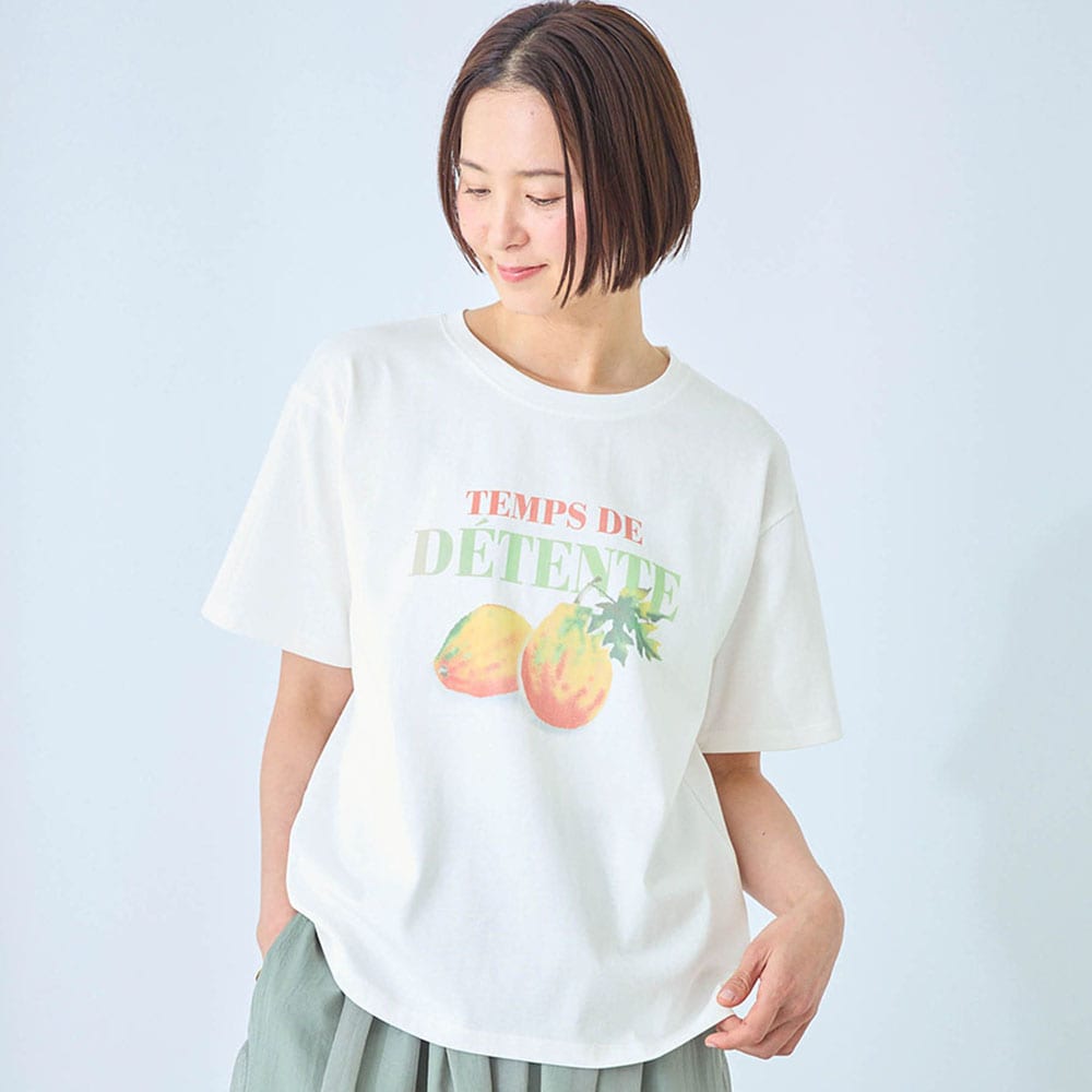 • 鮮やかなオレンジ&グリーンで描いたフルーツ柄がハツラツとした印象に