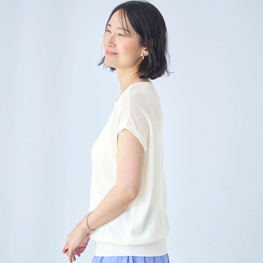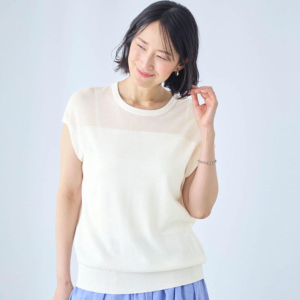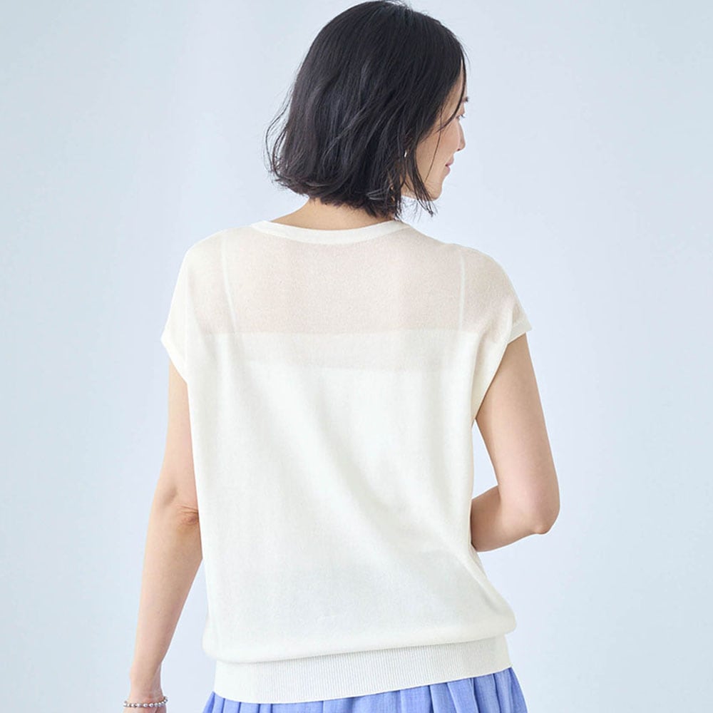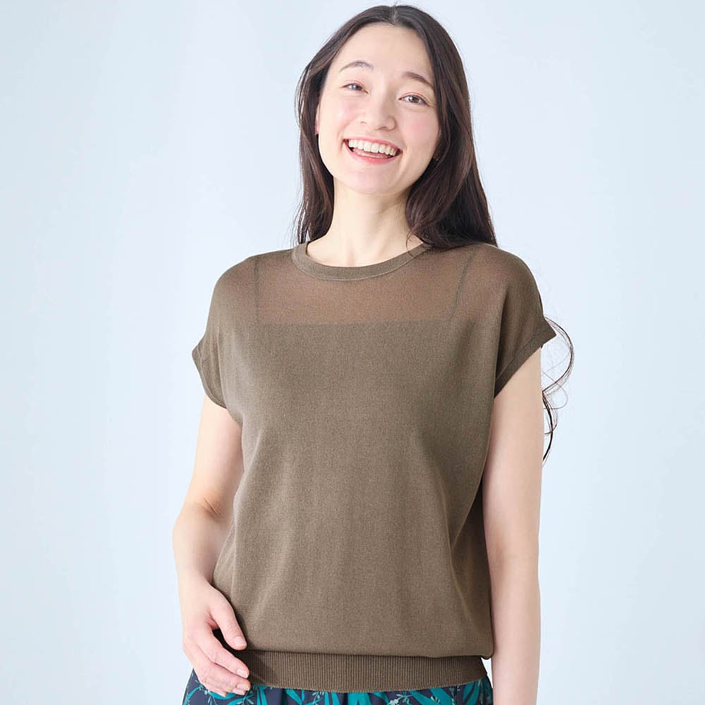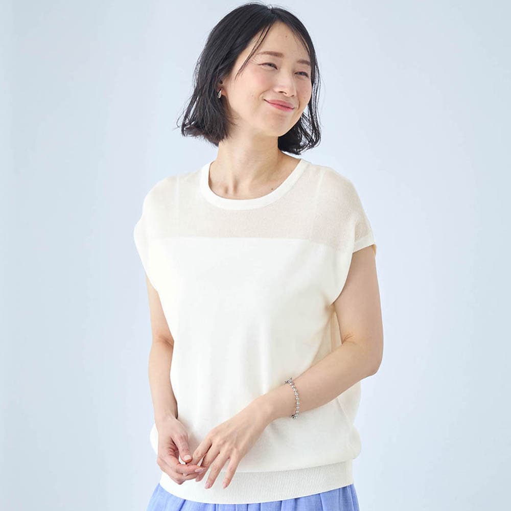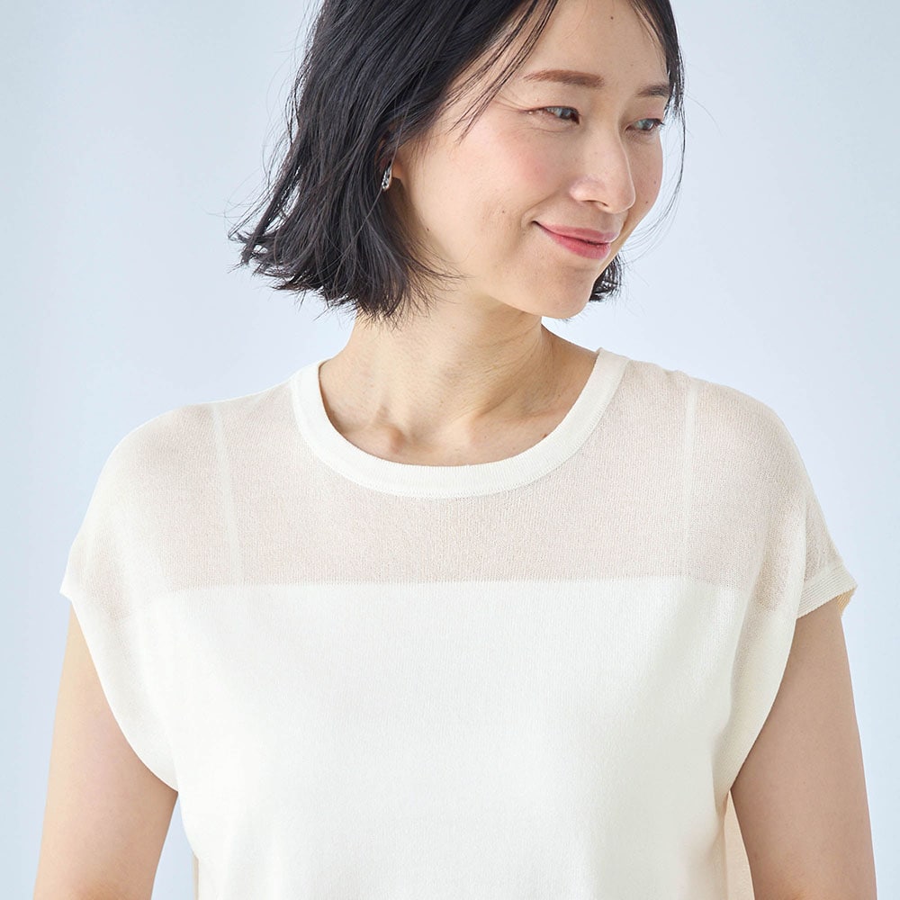 ・肩部分はシアー、鎖骨下からは編み目が詰まった、