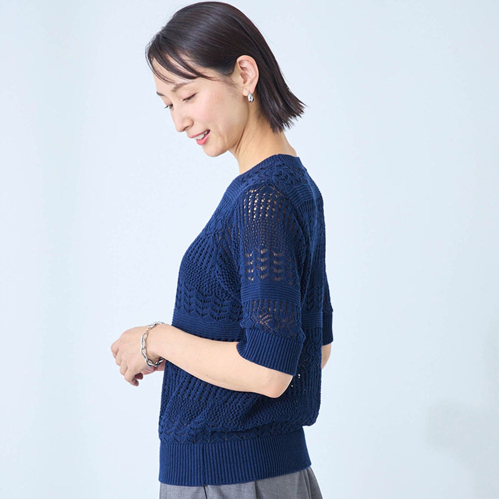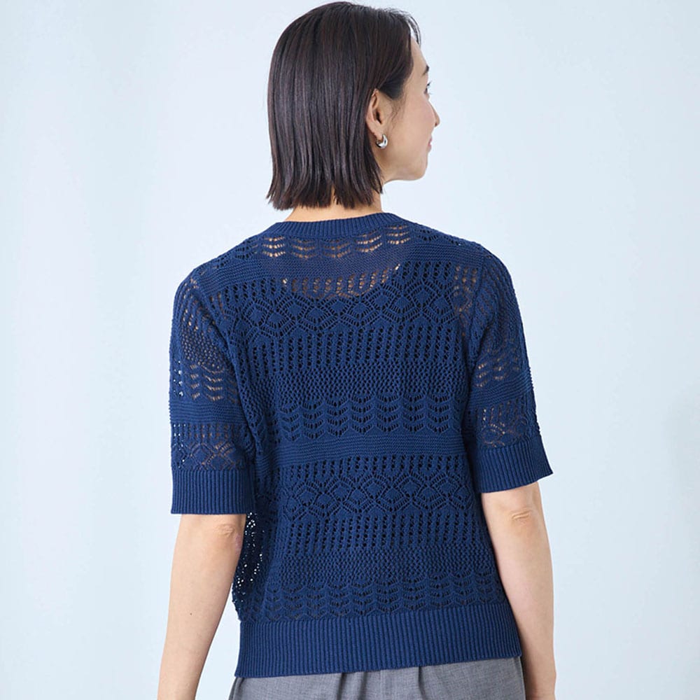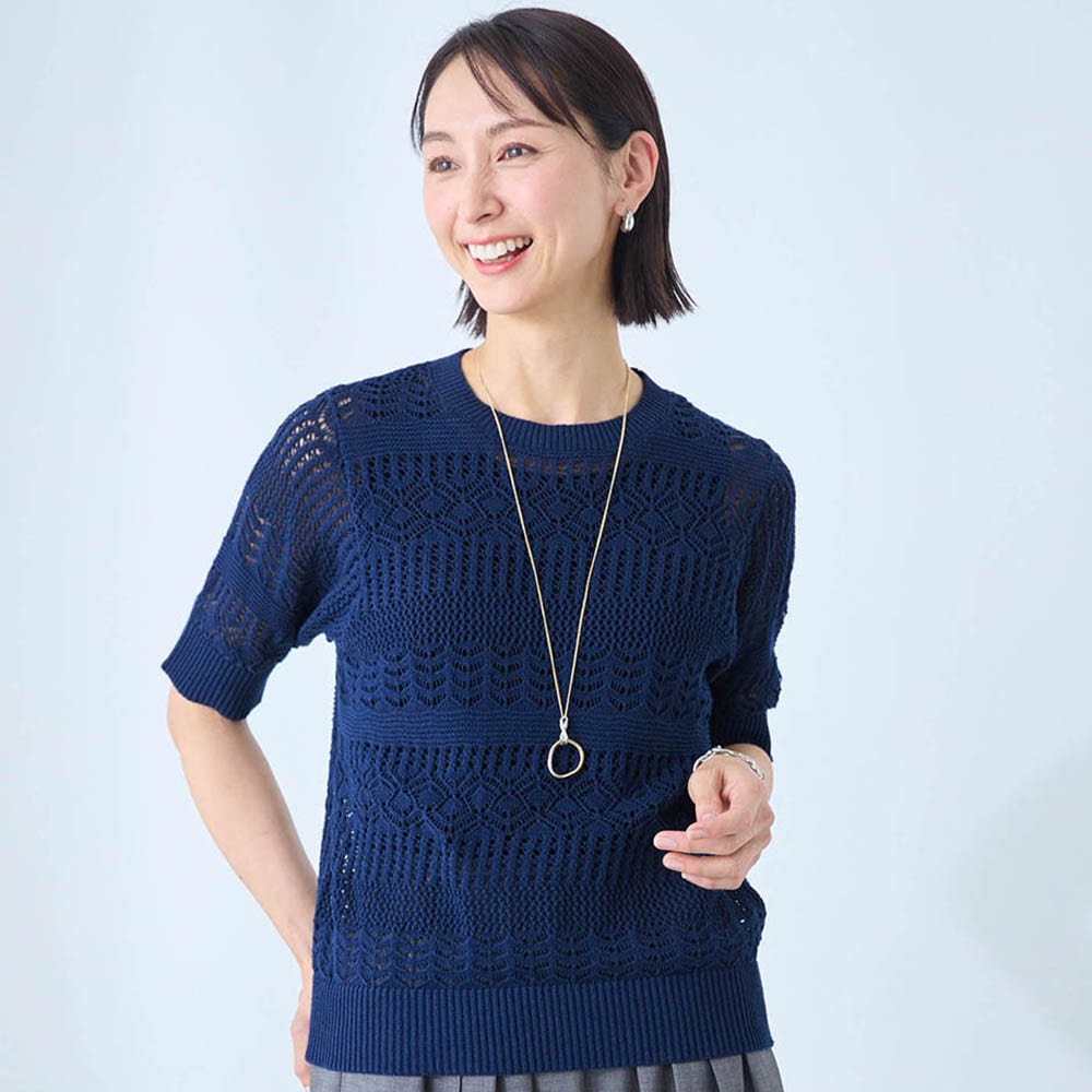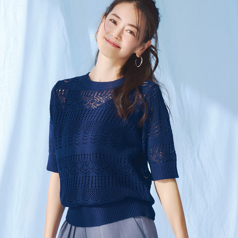 • 身頃全体が透かし編みになった、肌をほんのり感じる涼やかなデザイン
