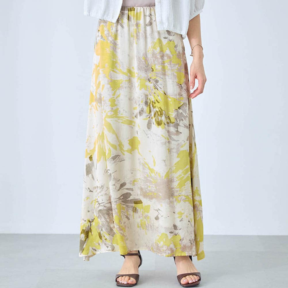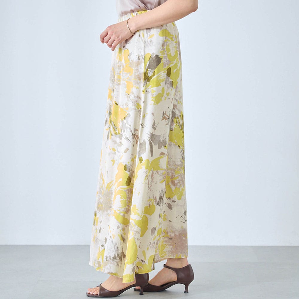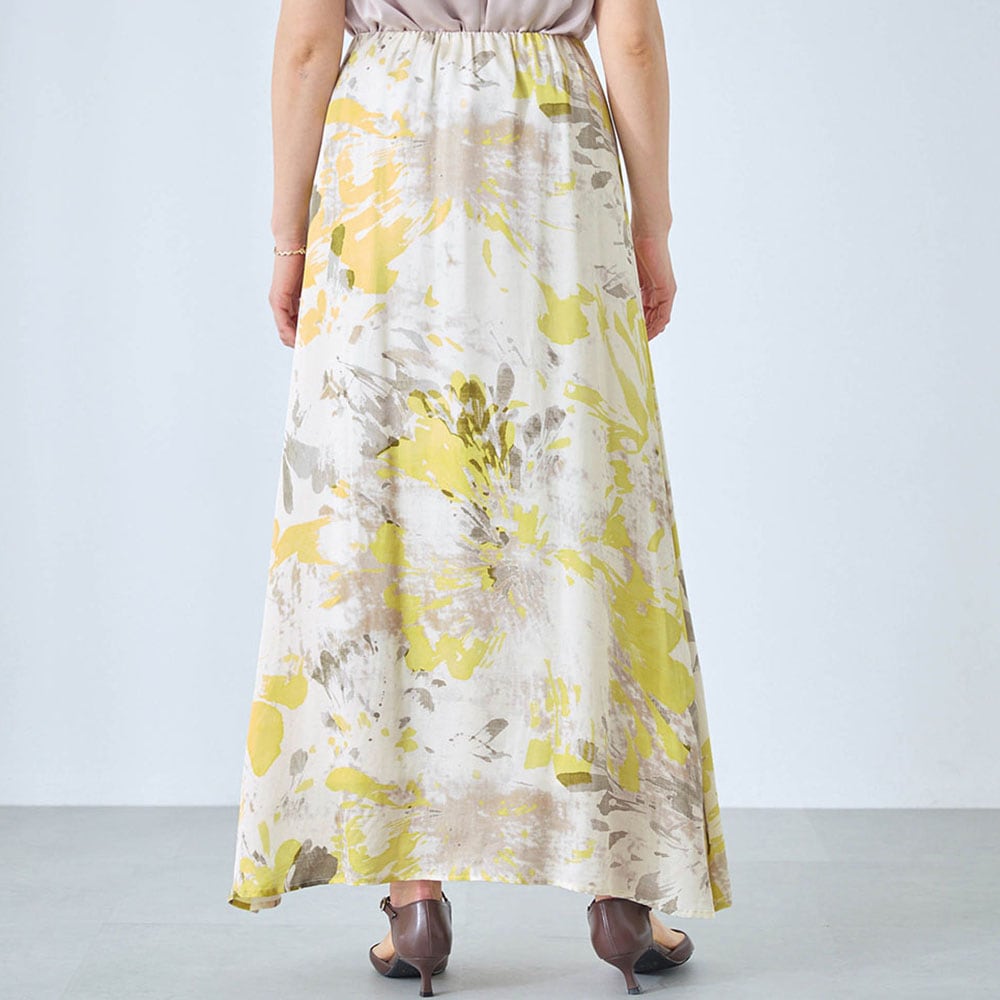 ・水彩画のようなアートな花柄をのせた華やかなプリントスカート
