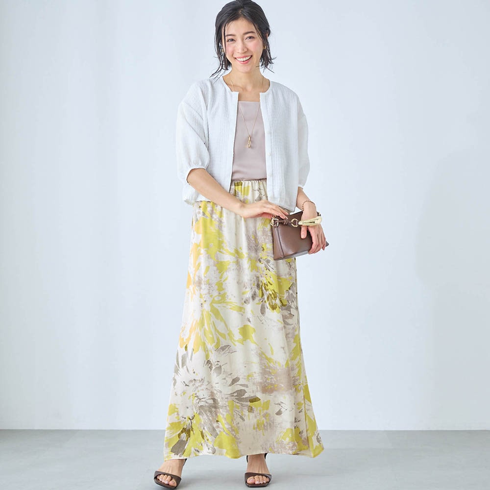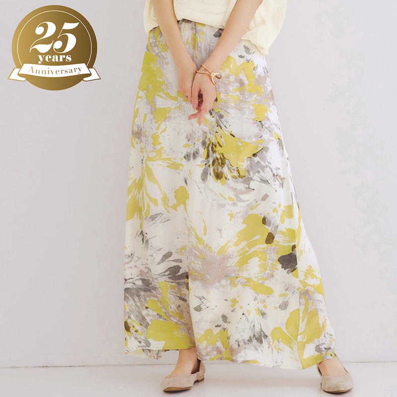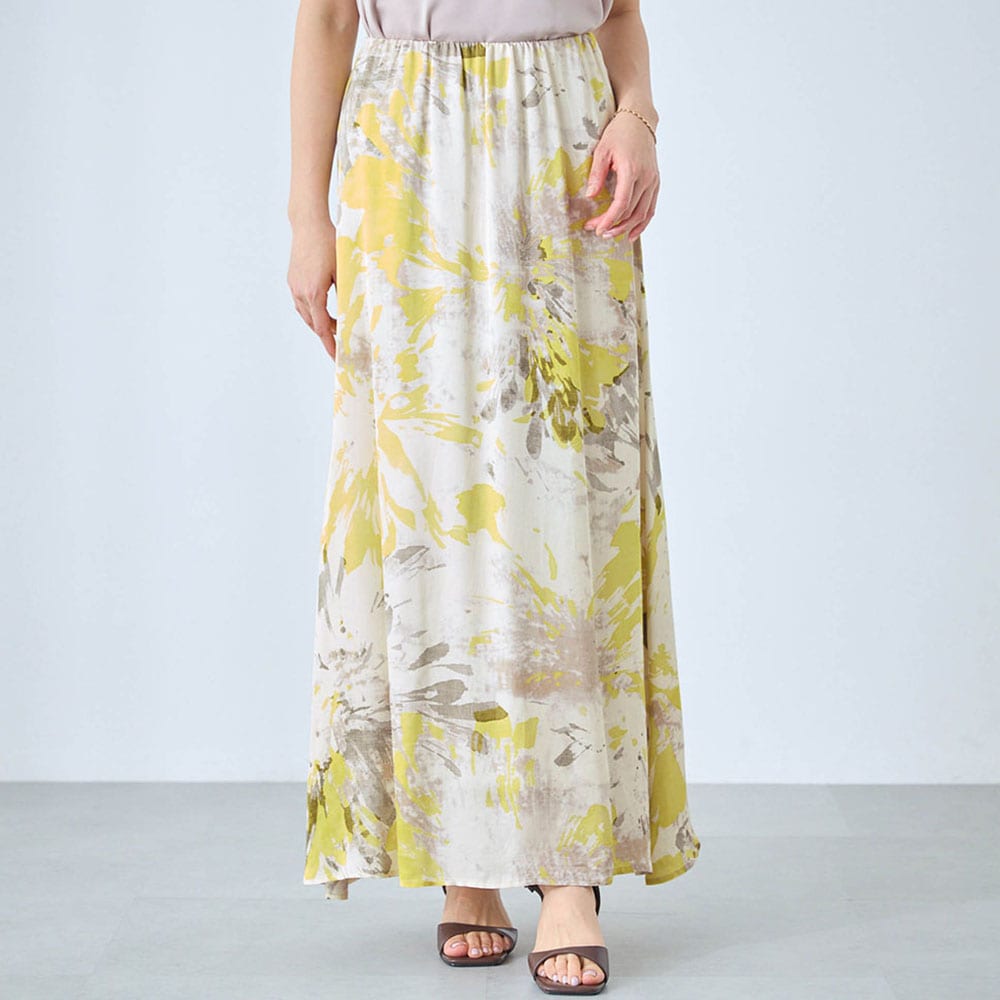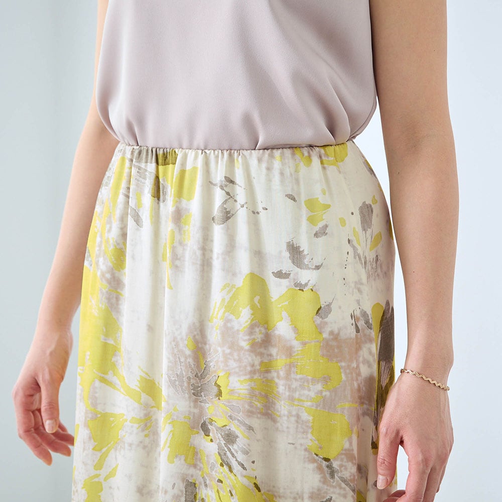 ・水彩画のようなアートな花柄をのせた華やかなプリントスカート