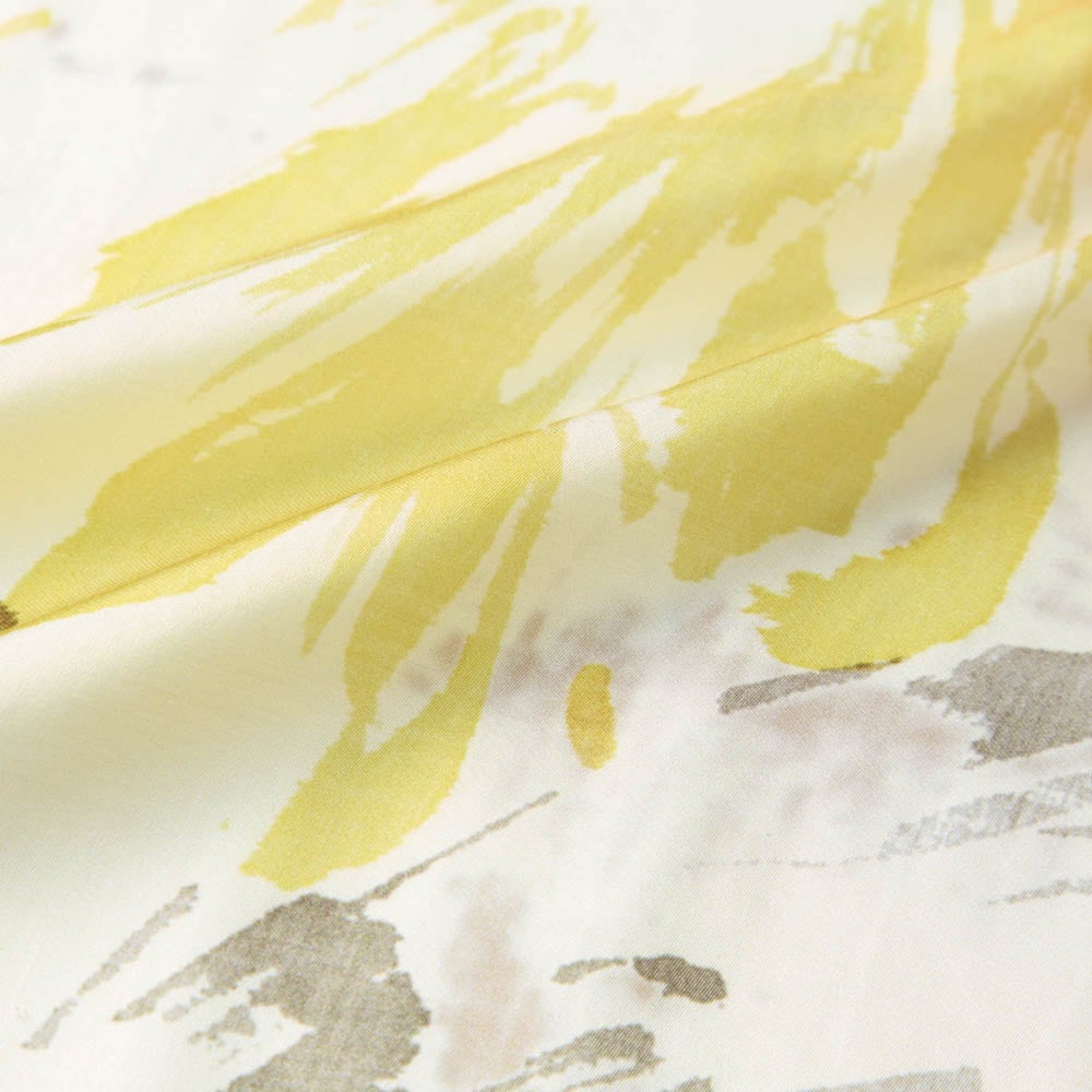 • 美しいドレープと光沢が魅力のサテン生地に水彩画のようなアートをのせたデザイン