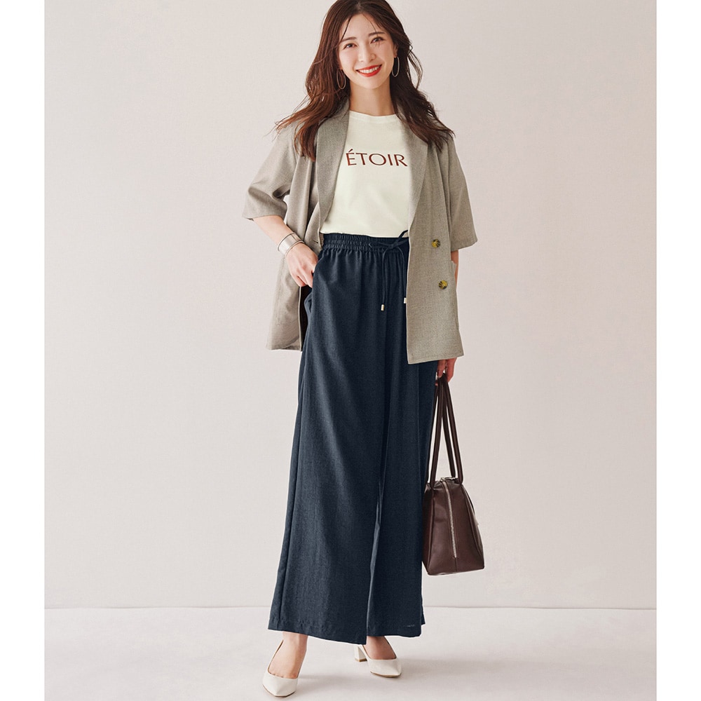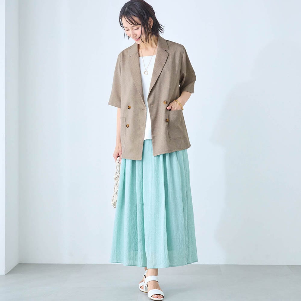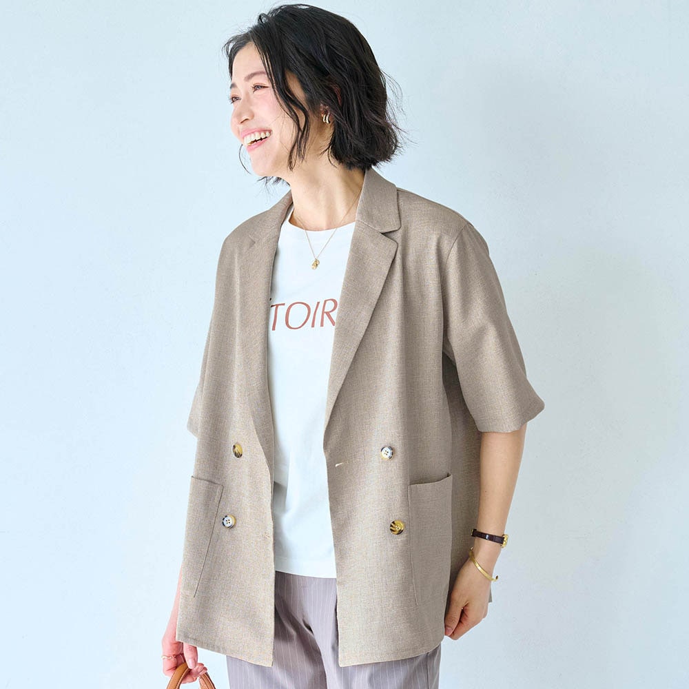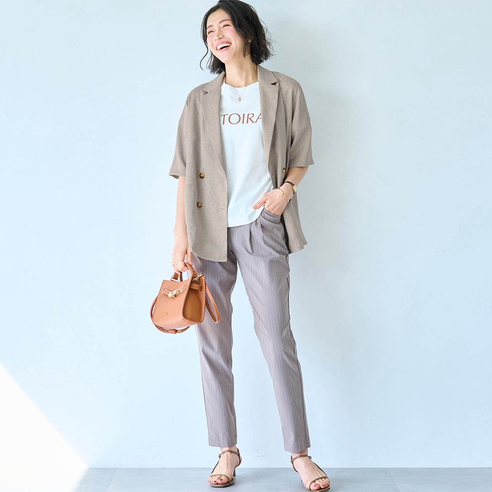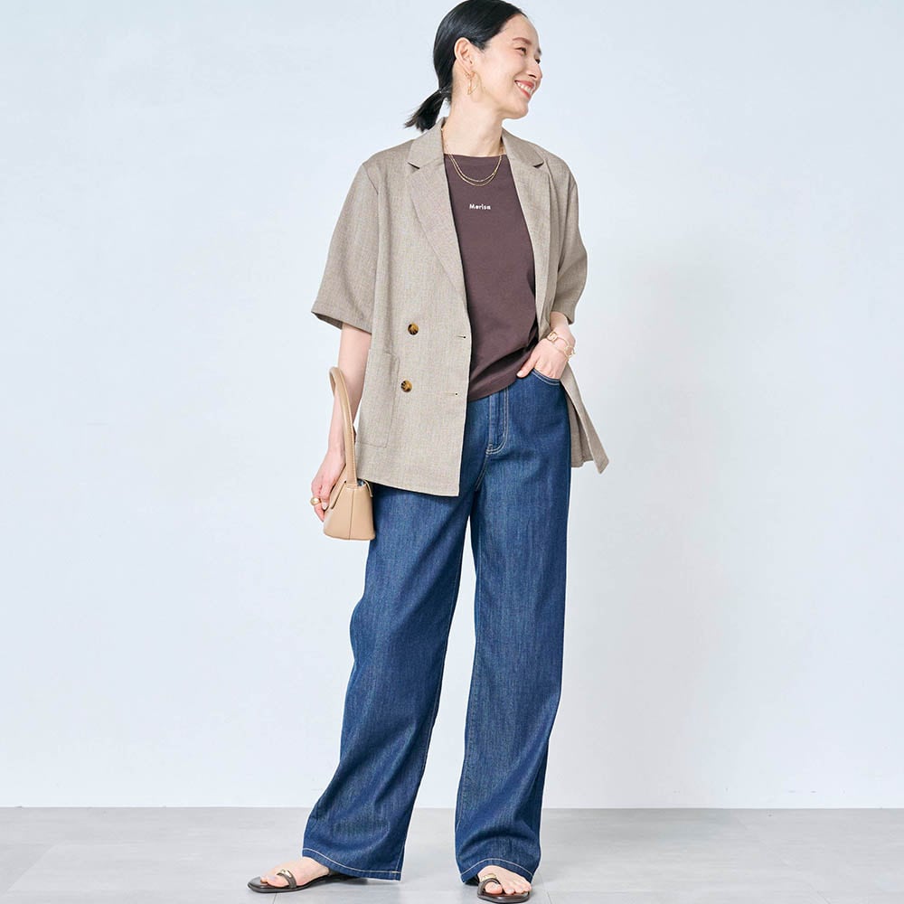カジュアルなTシャツに重ねてもきれいめな雰囲気が叶う
