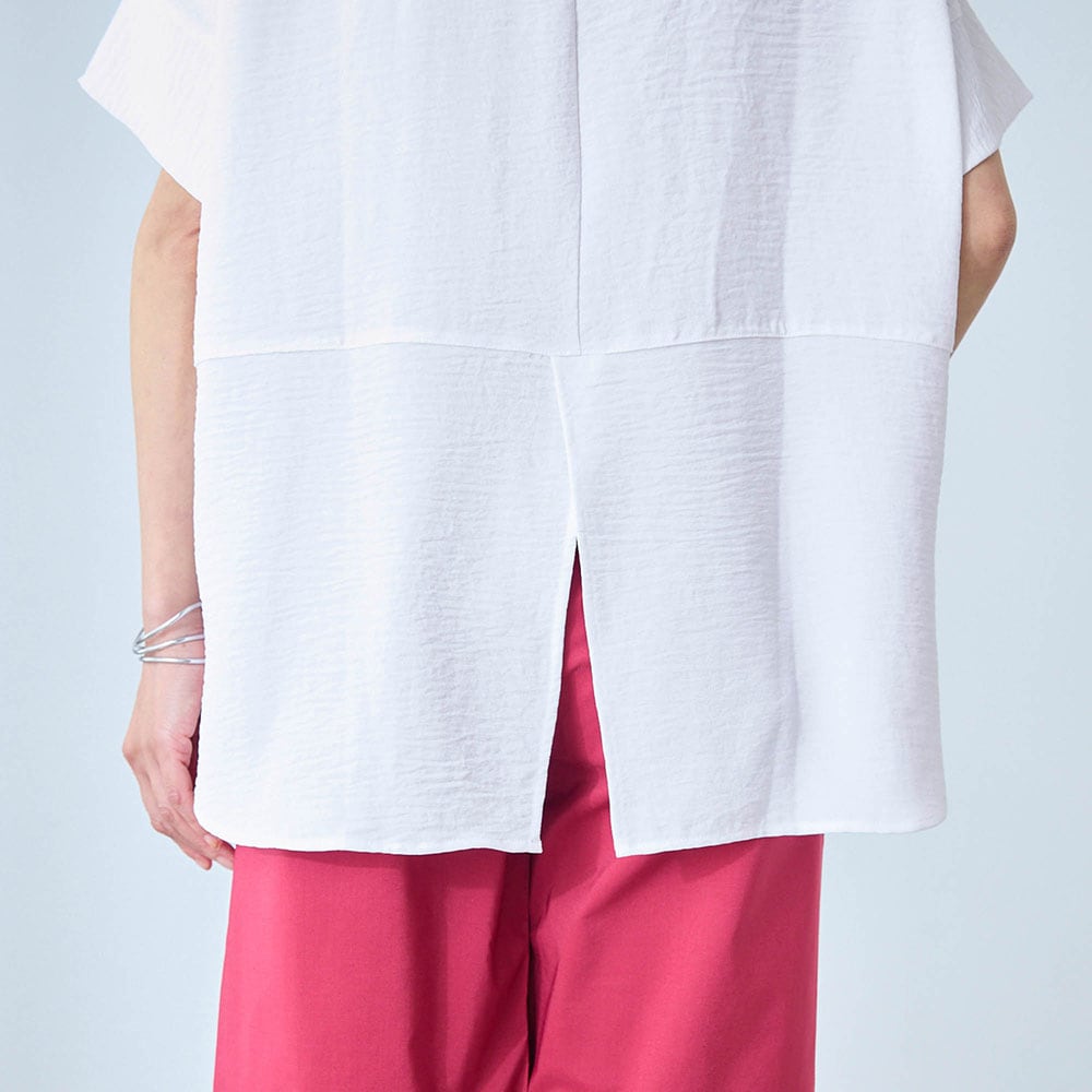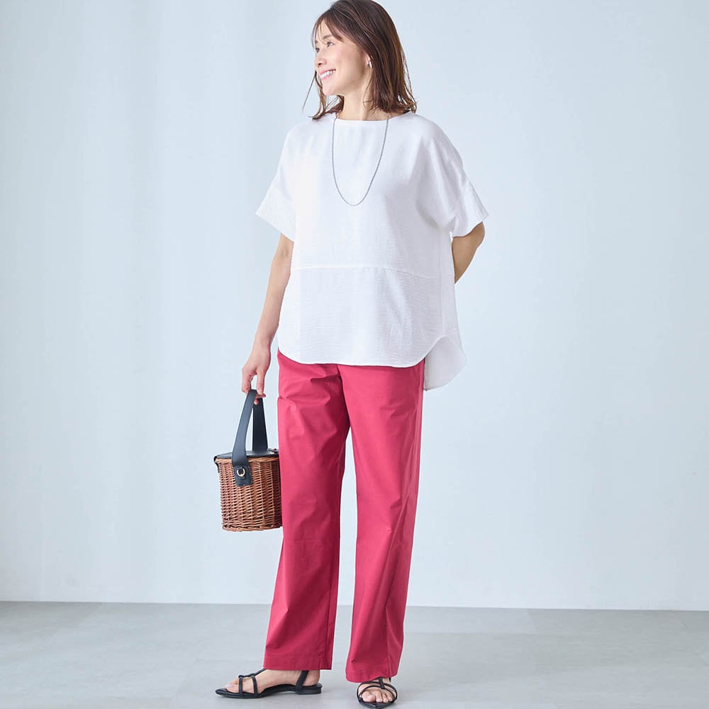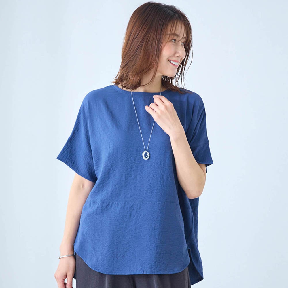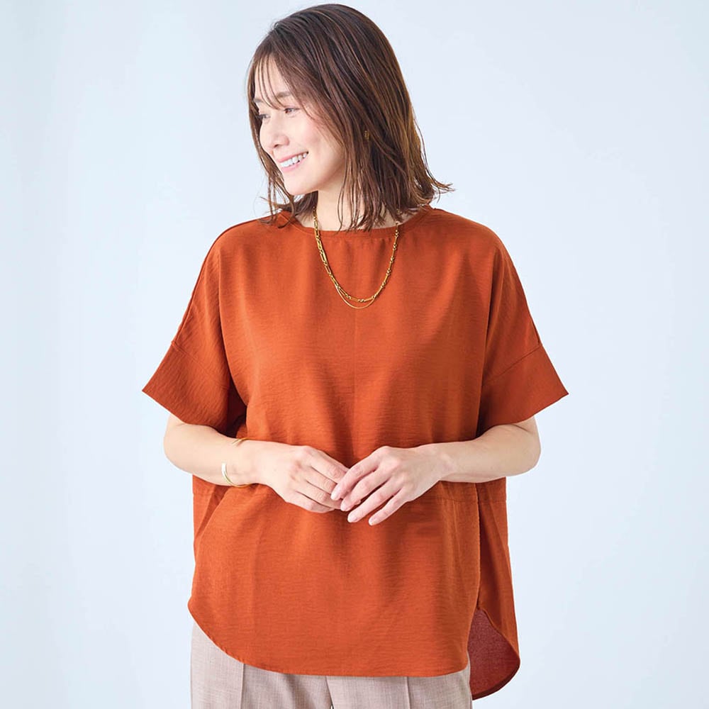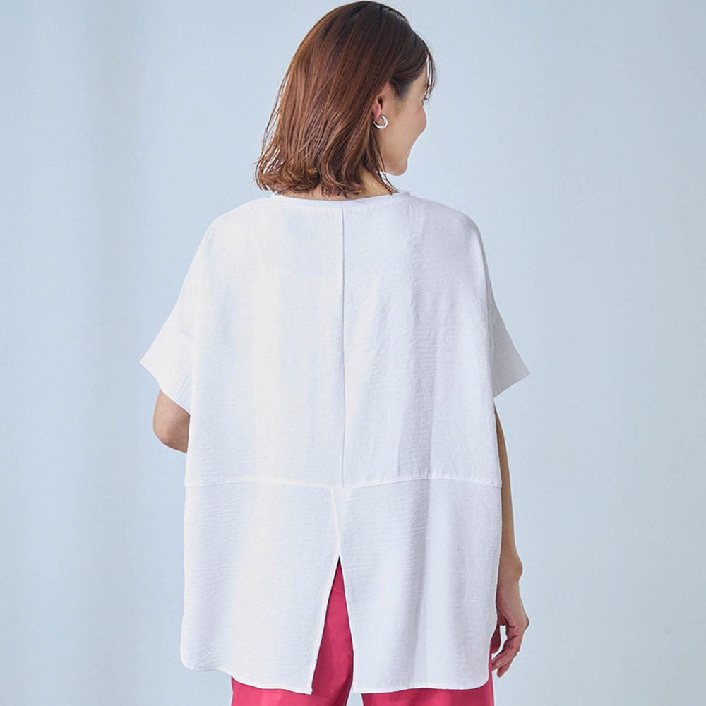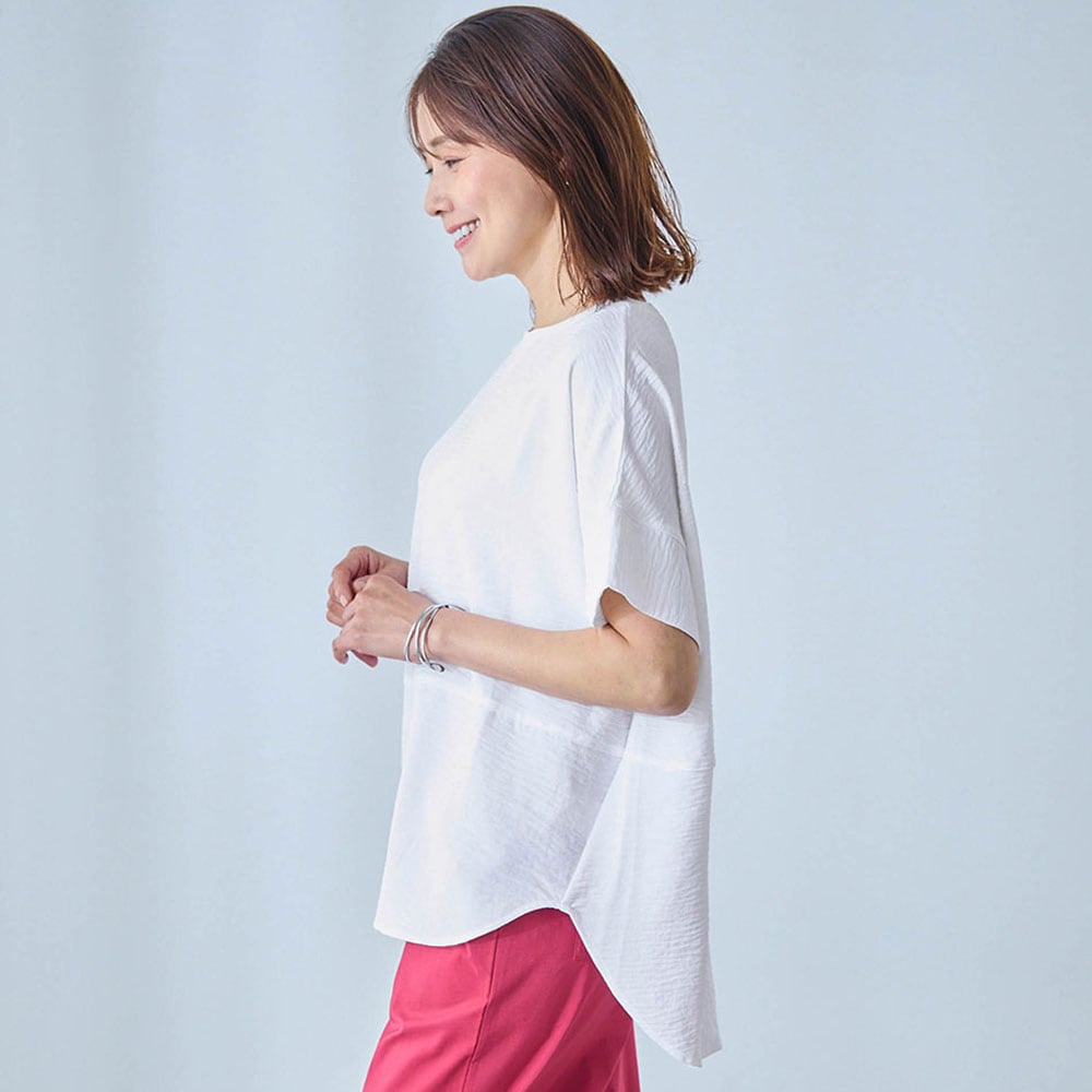 • 二の腕を隠す長めの袖丈は、切替え入り