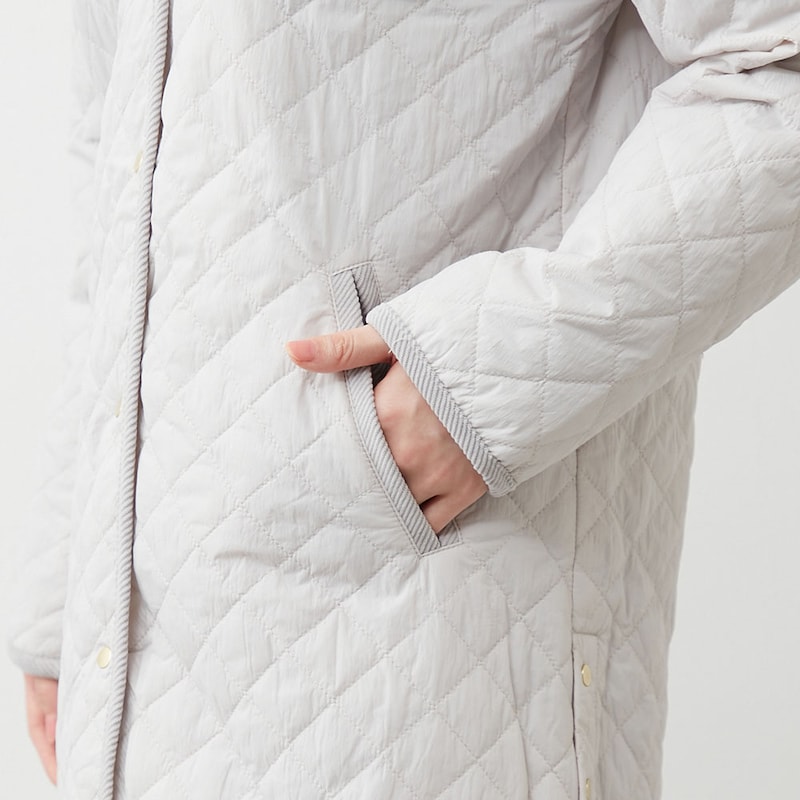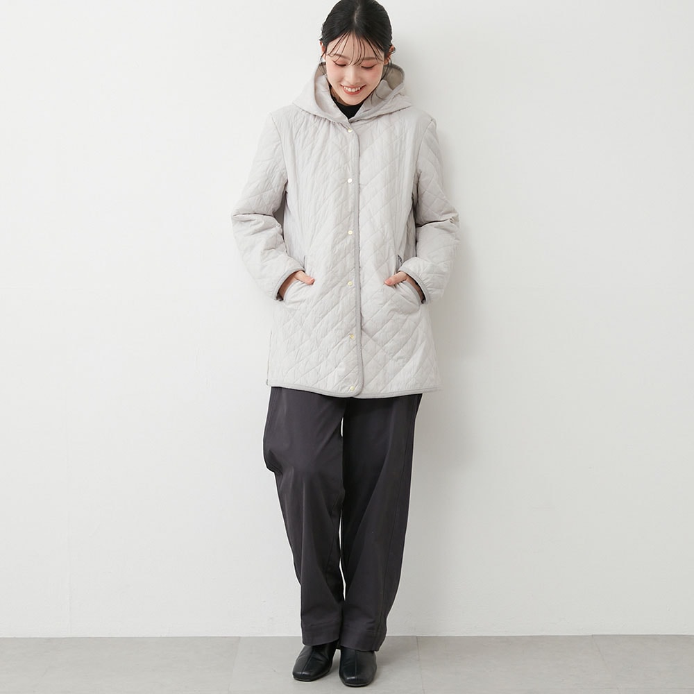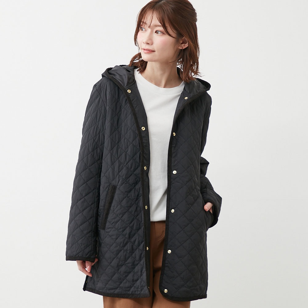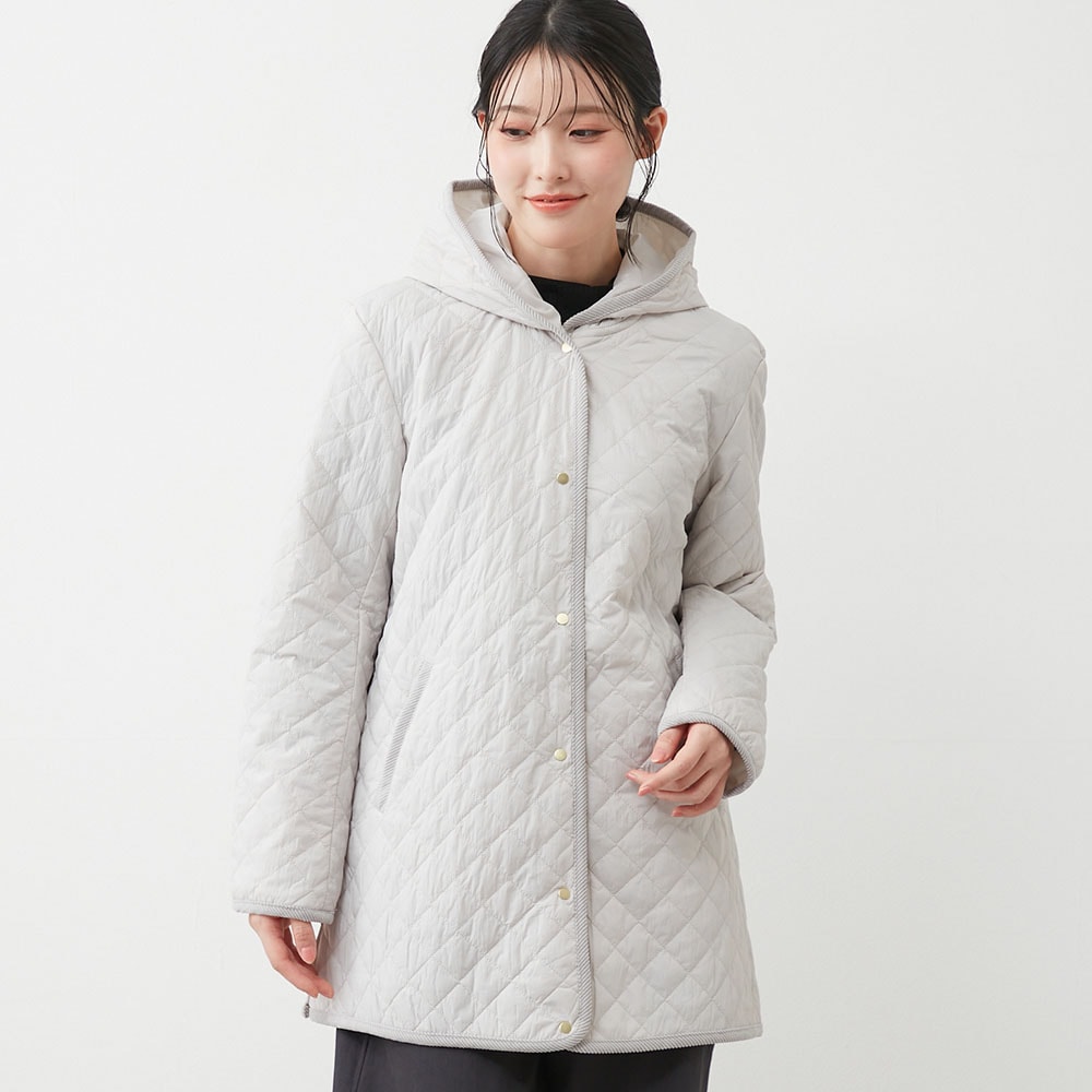 軽い着心地なのに暖かい、フード付きキルティングコート