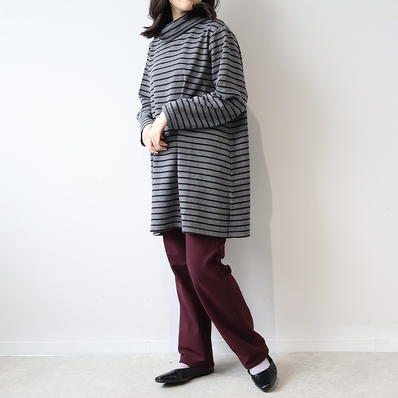 細身のパンツと合わせるとスッキリ見えし、バランスよく着こなせます。