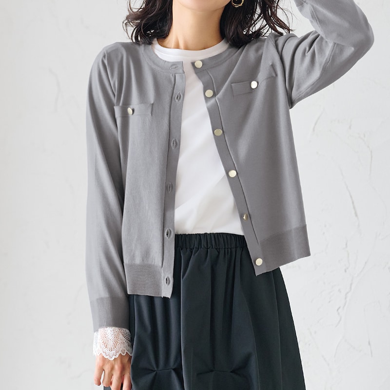 楽に動けるジャケット風のハイゲージニット。