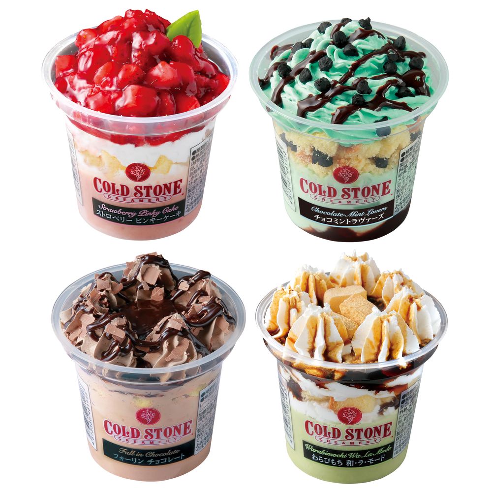 ■ストロベリーピンキーケーキ・・・コールドストーンで一番人気のストロベリーフレーバーをカップアイスで再現。たっぷりのストロベリーをトッピングした見た目も可愛い商品です。