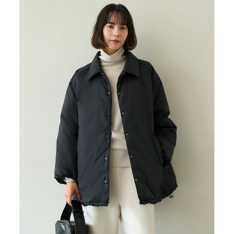 普段Lですがサイズ表を見てSに それでも身幅はかなりゆったりでした 裾をドローコードで調節できるがひもが輪っかにぶら下がって見えるのが好みでない ボタン止め部分が安っぽい ナイロン素材なのでバサバサ音がします