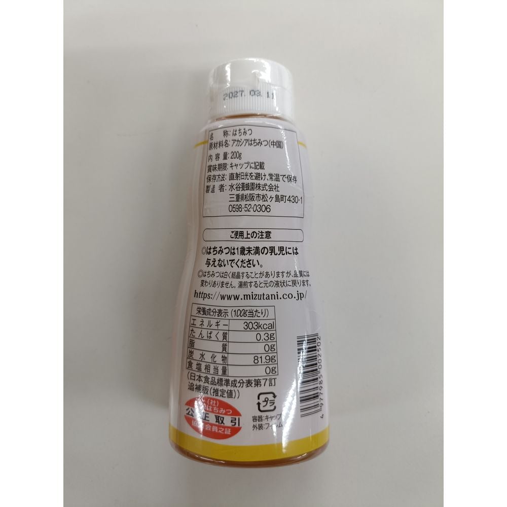 商品詳細を読んで[(手元にあるはちみつが500gボトルだったので)大体半分弱の容量か]と、スーパーに並んでいる小さいボトルサイズをイメージしていたらそれより小さい、よくコンビニで見かけるサイズでした。賞味期限はきちんと表記してあるし、[フードロス対策]とはいえ一年保つ。そして、何と言っても『アカシア』ですから。甘味が薄いハズレのフルーツにかけたり、グラニュー糖代わりにホットコーヒーに入れたり。10本もあるので料理等、色々に使えて楽しみです。