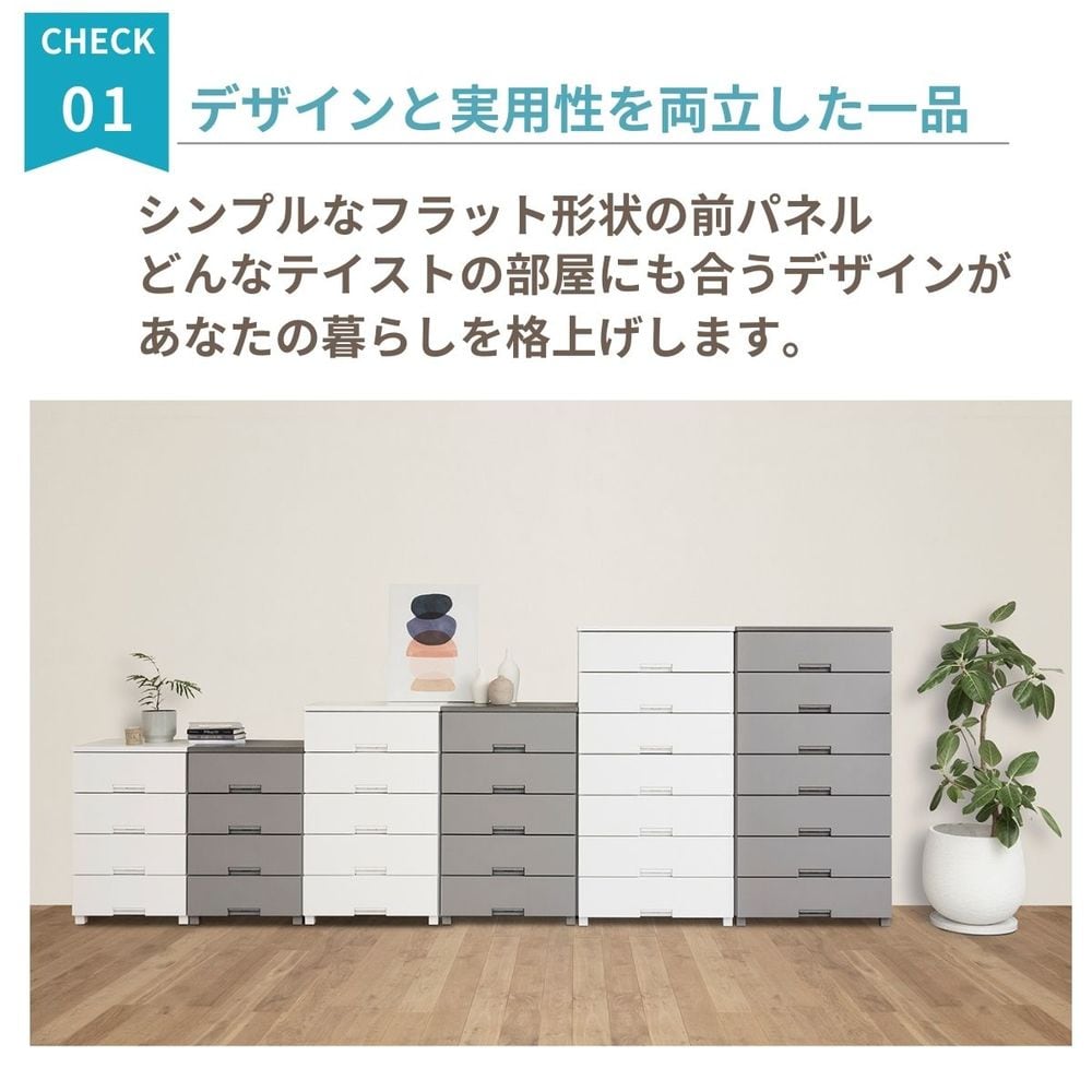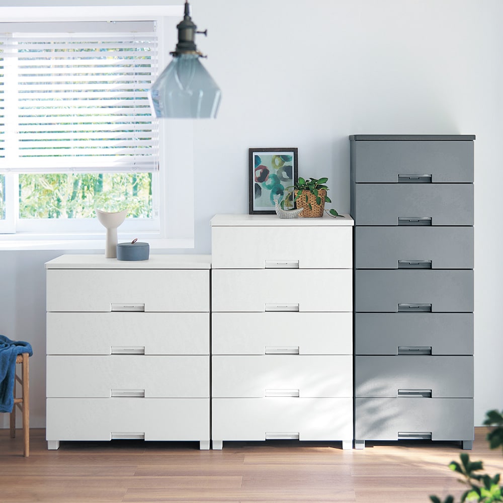 洗練されたシンプルモダン。どんな空間にも白とグレーが映える、機能美チェスト。