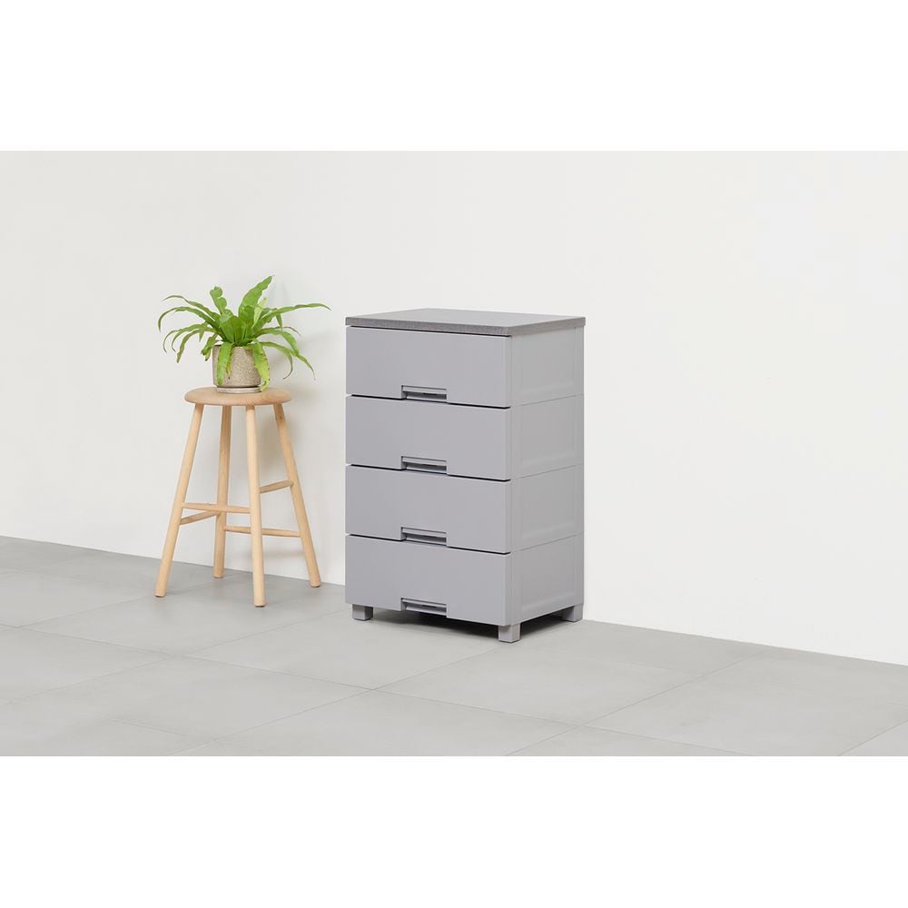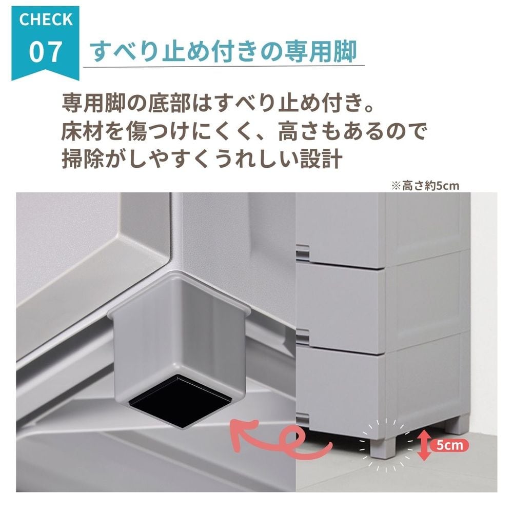 ●主材/引出し・外枠・ロック・脚部:再生ポリプロピレン、ローラー:ポリプロピレン、すべり止め:ポリエチレン、前パネル:スチロール樹脂、天板:プリント化粧木質繊維板