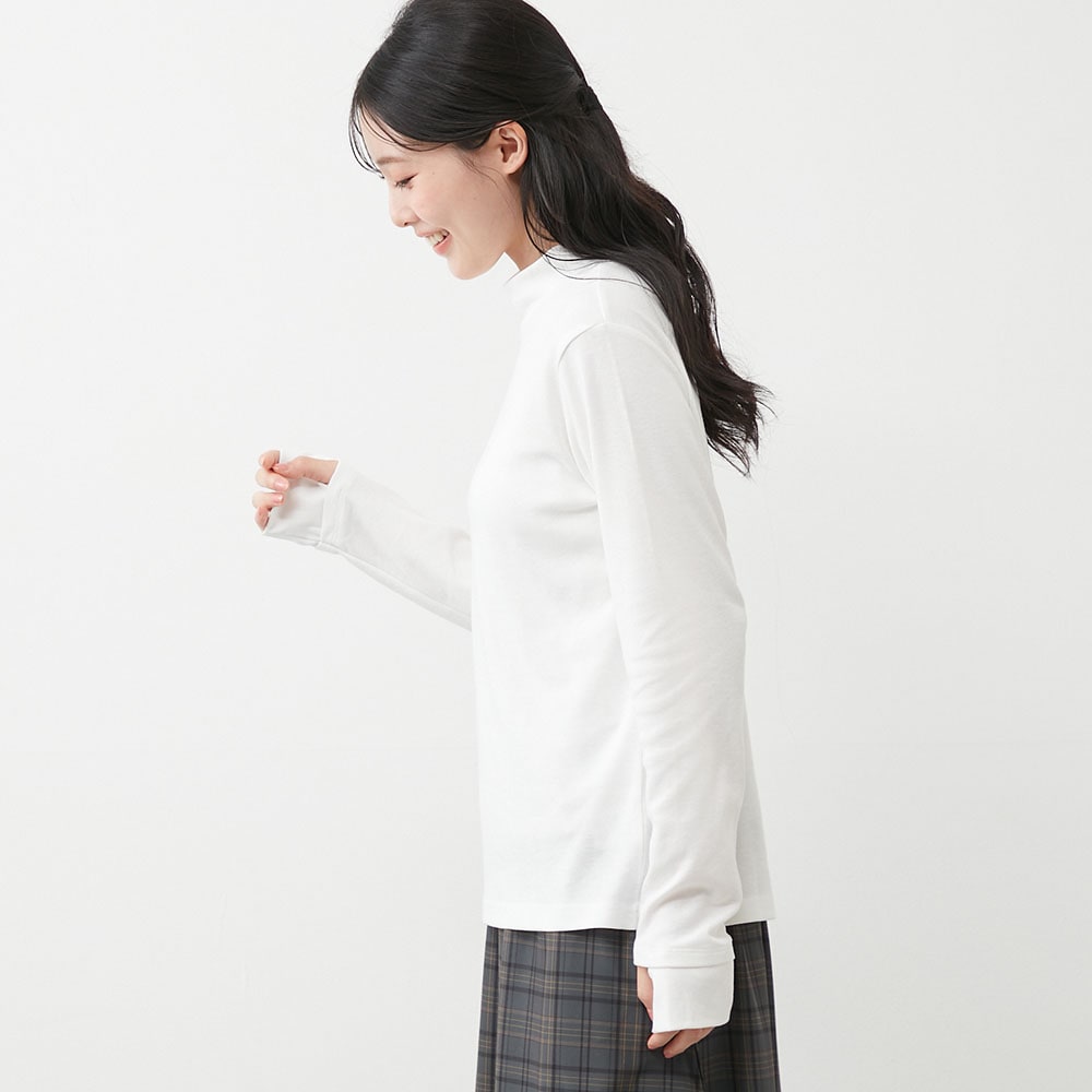 タートルネックは春になると重く感じるのでハイネックは重宝します。肌触りも柔らかく、手の甲をカバーできるデザインも良かったです。ハイネックの商品を増やしてほしいです。
