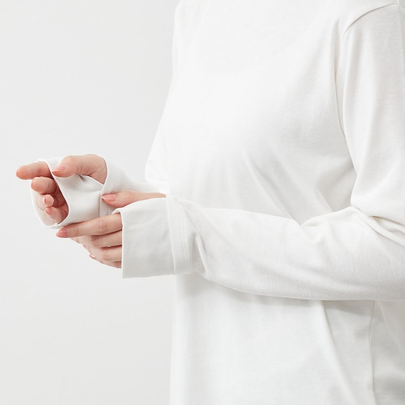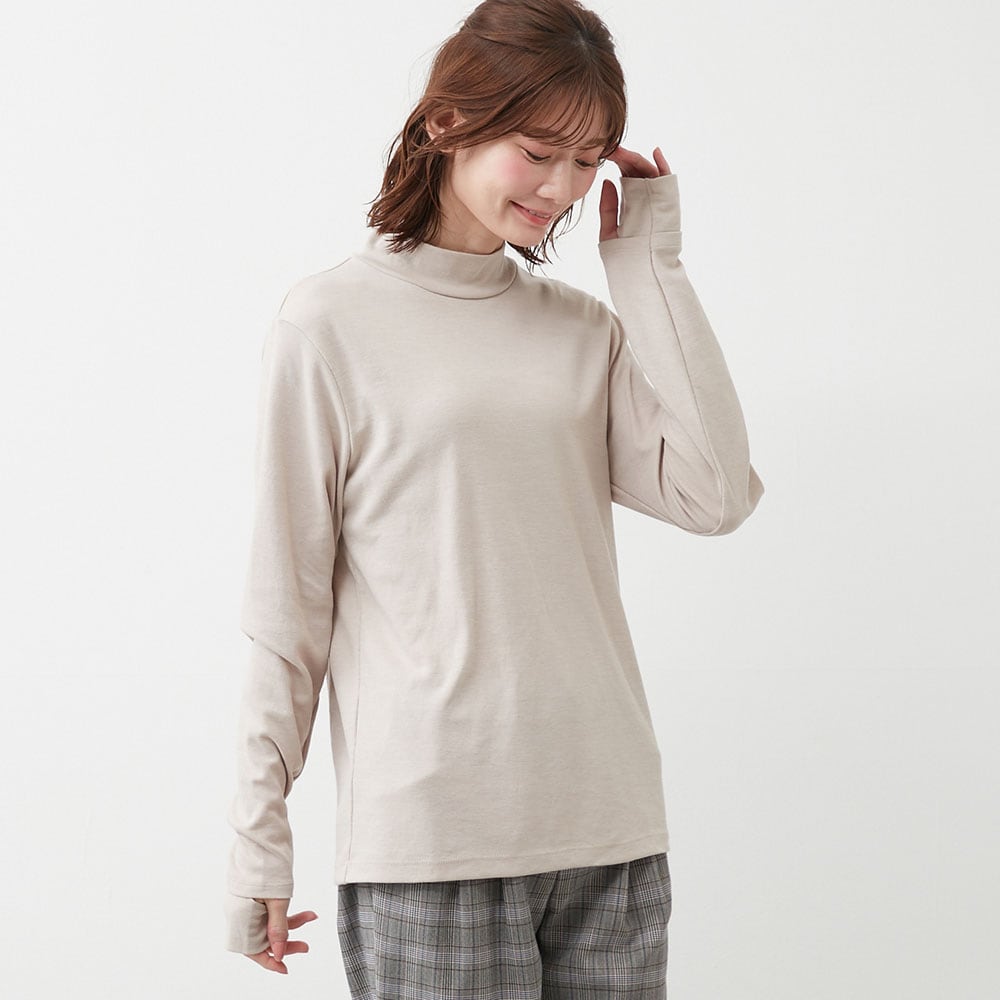 ひと昔前の袖が長めでハンドウォーマー要らずのホットコットがお気に入りだったので、同じ仕様のこちらを注文。首の立ち上がりも締め付けが無く暖かく手首も保温されます。身体のラインも拾わないので一枚で着ても大丈夫。ただ、1回目の着用後には手首あたりに毛玉が出来ました。綿の配合が低いからかな。着心地はチクチクしなくてとても良いです。