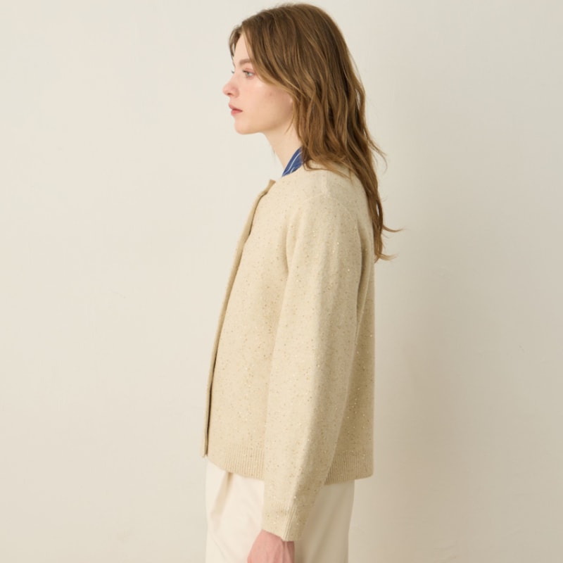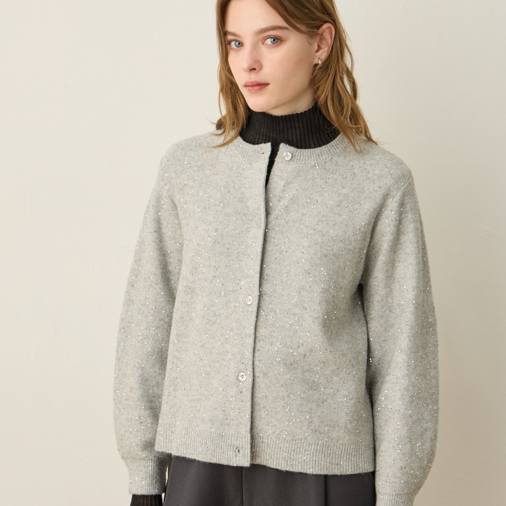 きらめきを纏う華やかスパンコールニットカーディガン