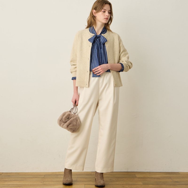 ※素材の特性上、着用中に他の衣料に毛羽がつくことがあります。その際はブラシ等を使用してください。