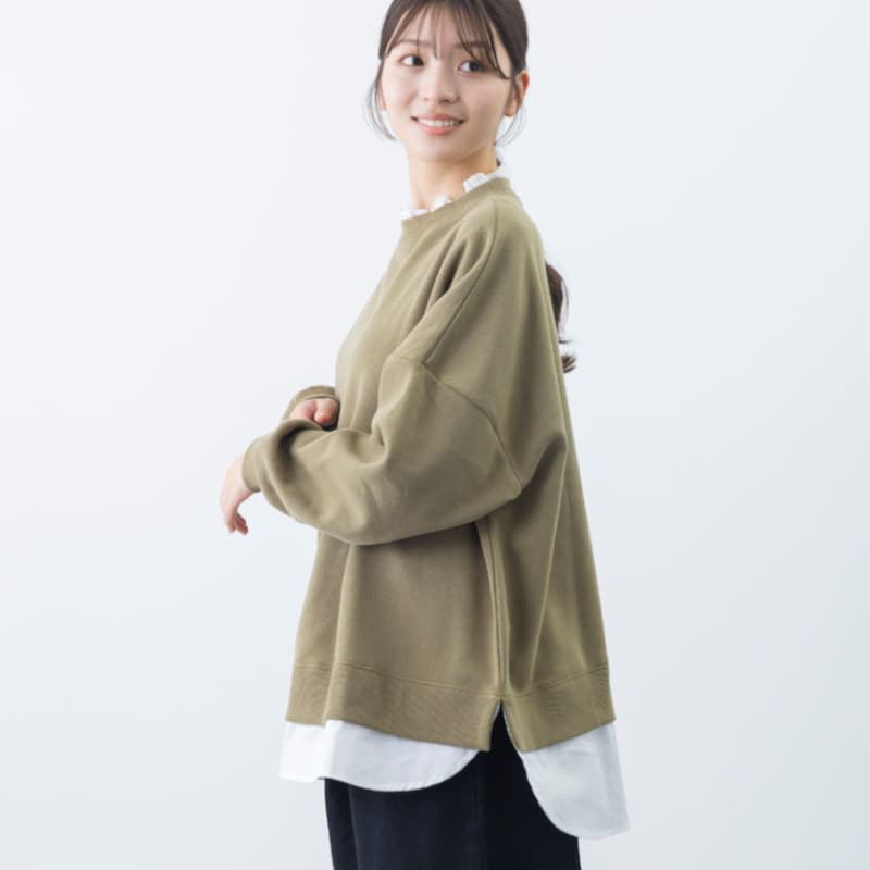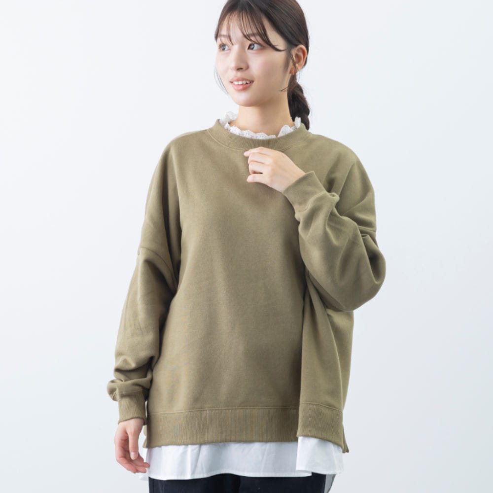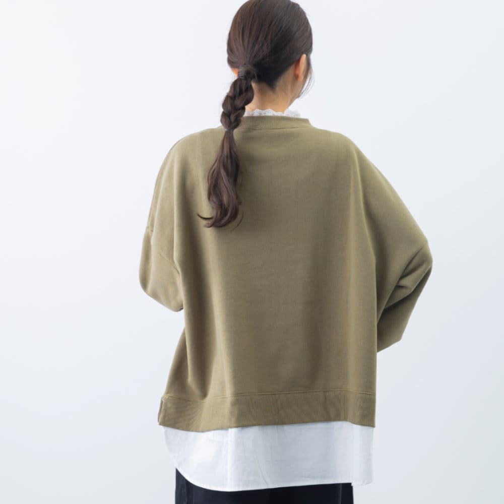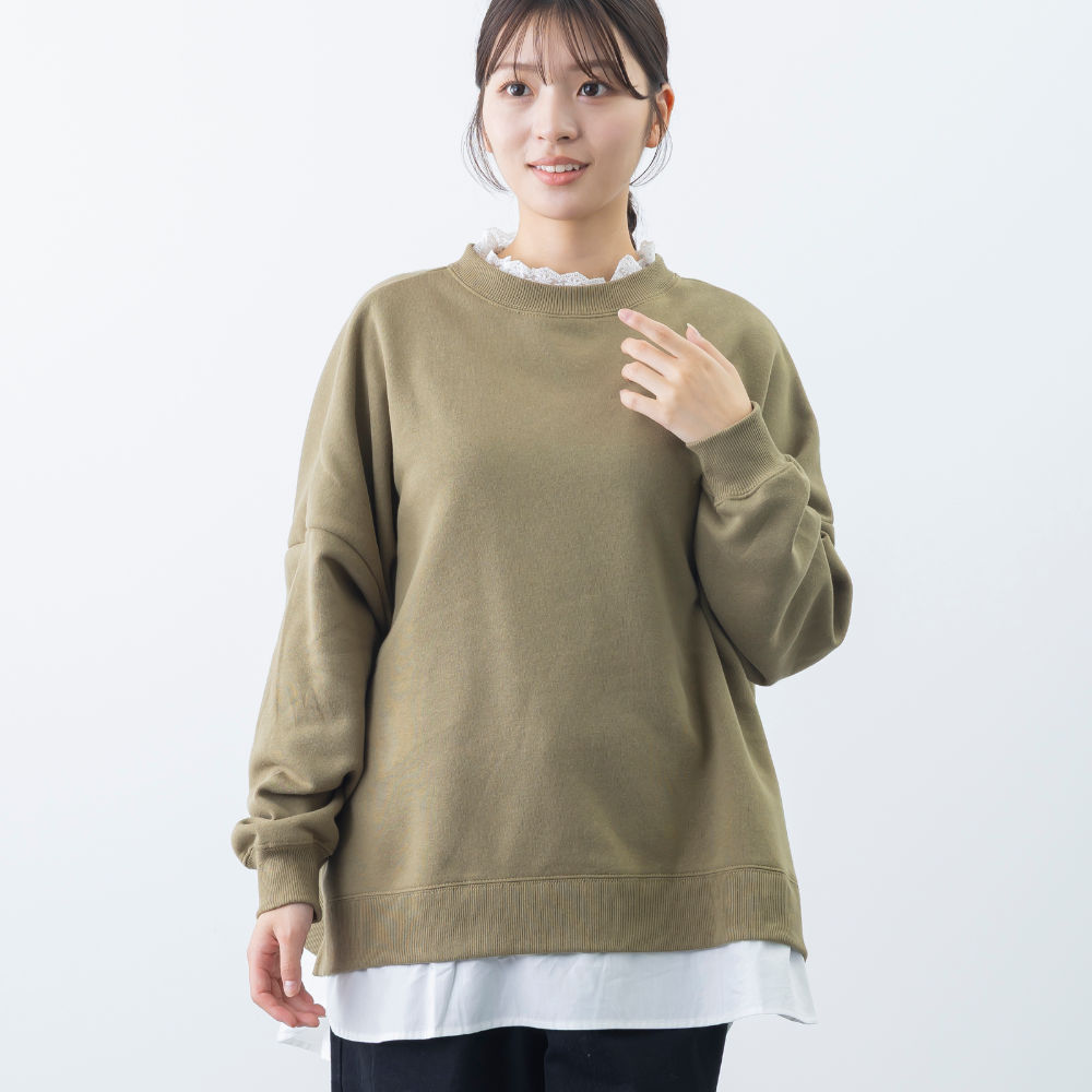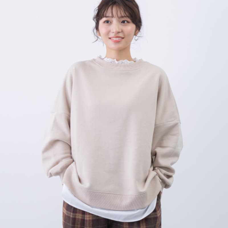 裏起毛襟レースレイヤード風プルオーバー