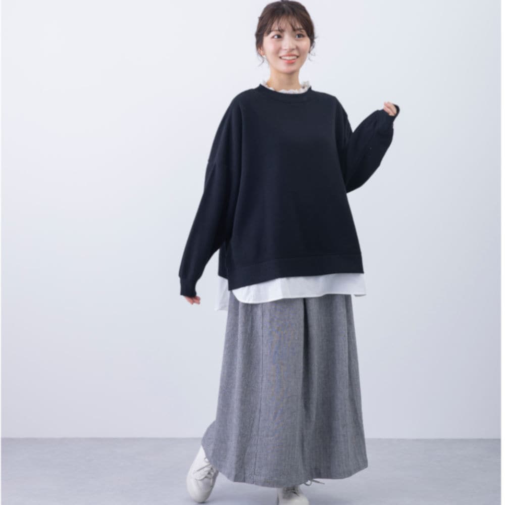・ゆったりとしたシルエットで体型を選ばず、リラックス感のある着心地。