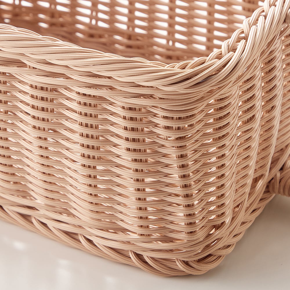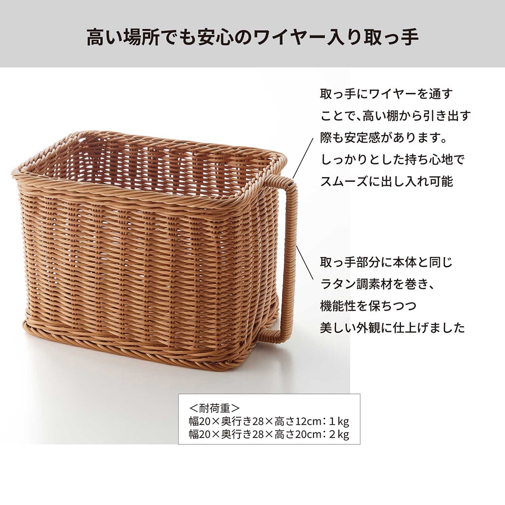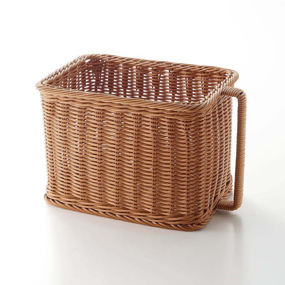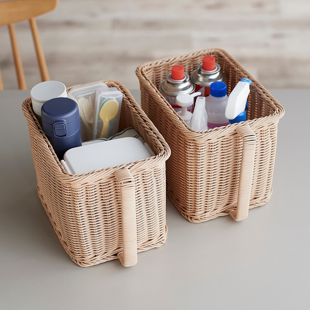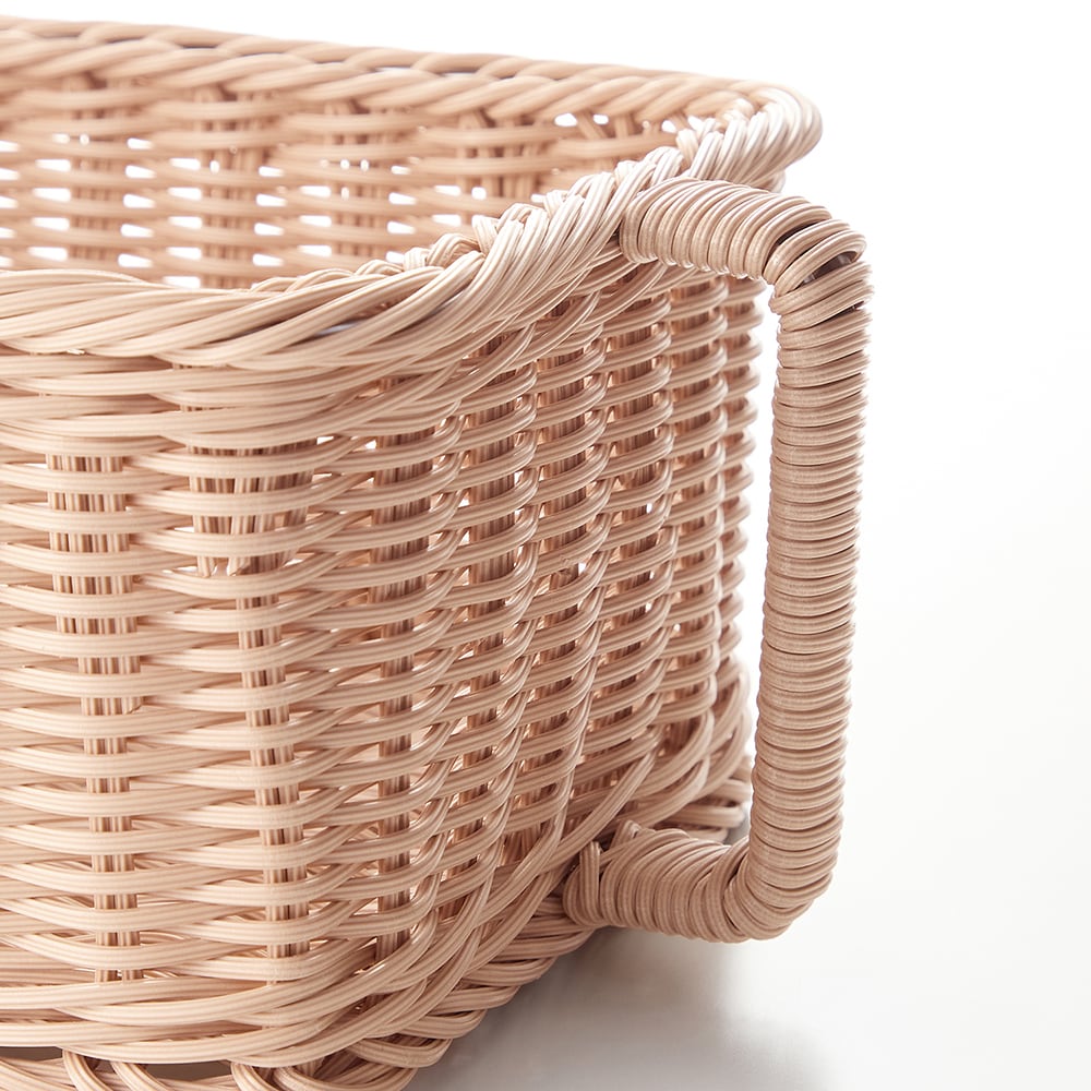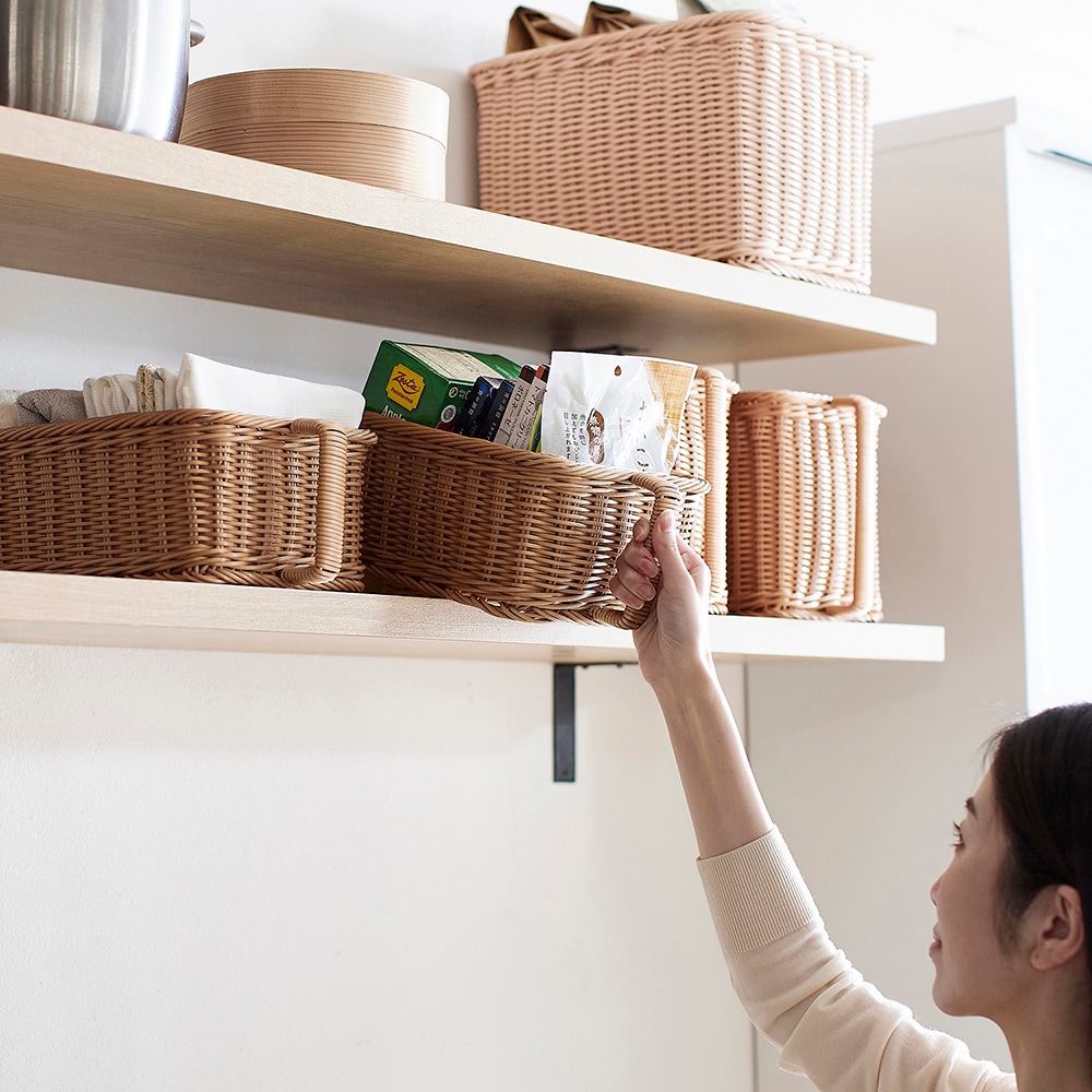 高い場所でも取り出しやすい、洗えるラタン調ストッカー