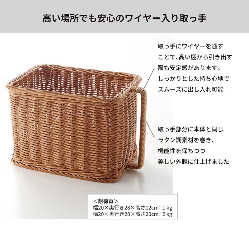 ・取っ手にワイヤーを入れ、高い場所からの取り出しも安定