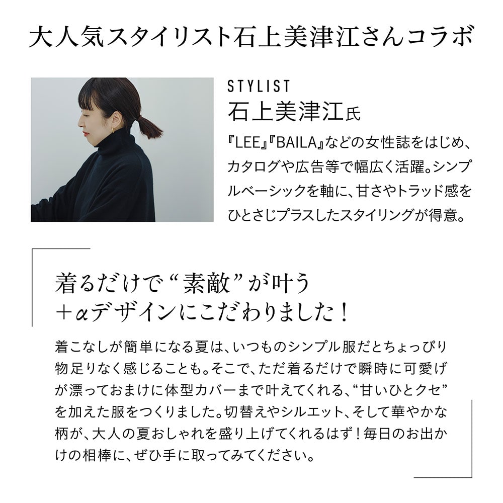 • 左サイドのロングリボンでウエスト幅の調節も可能