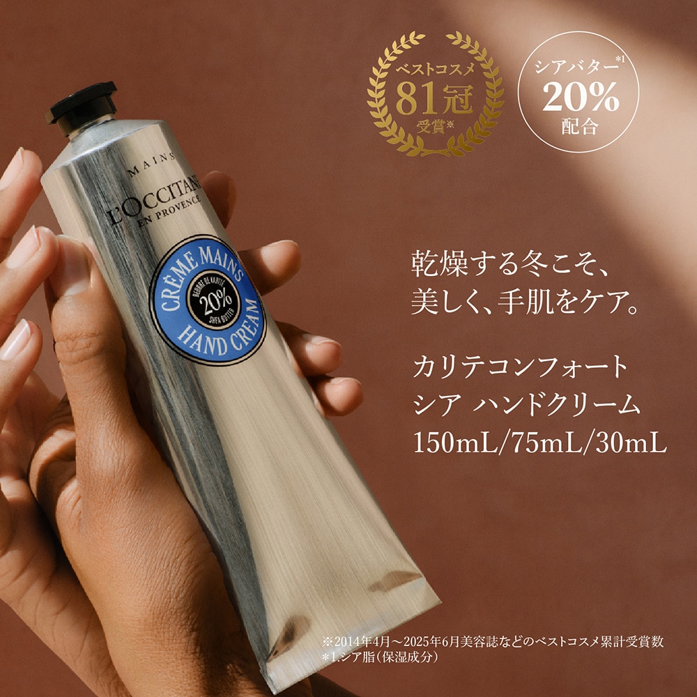 冬の厳しい乾燥にさらされる手肌へ、シアバター(*)20%の保湿力を。