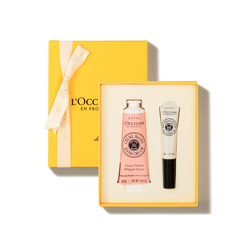 ホイップのようにふんわり軽やかなテクスチャーで、ピオニーの華やかな香りとうるおいで手肌を包み込むハンドクリームと、爪をすこやかに保つ、シアオイル(*)30%配合のネイルオイル。