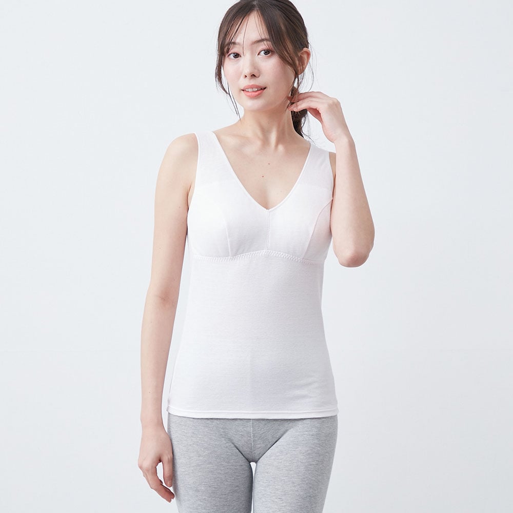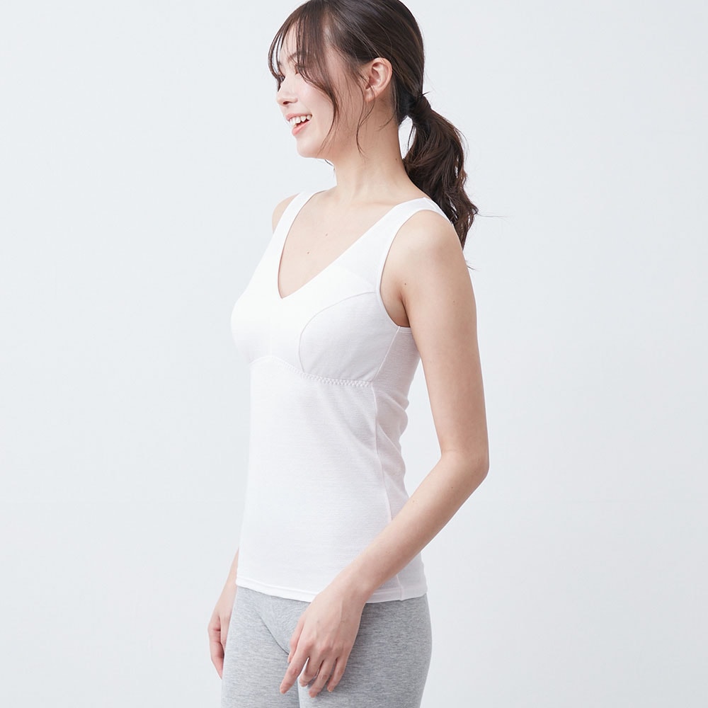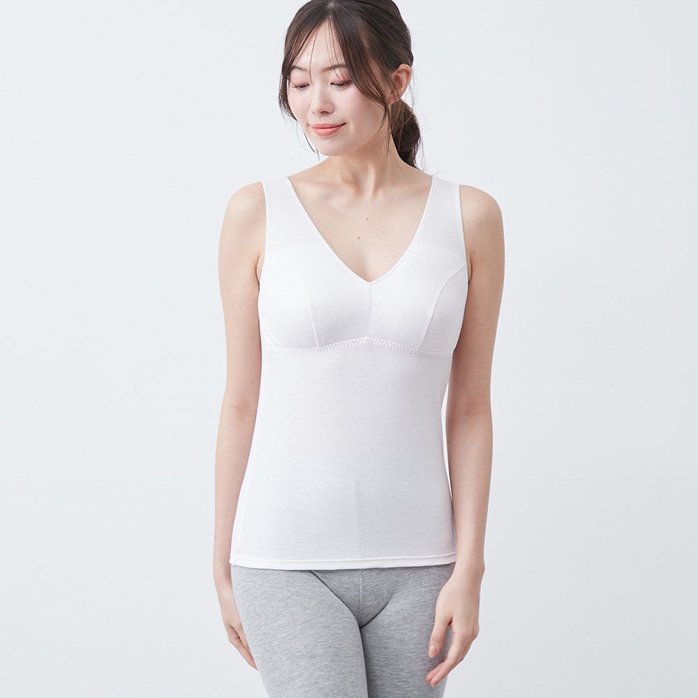・ブラジャーなしで着られる、楽ちんなカップ付きキャミソール。