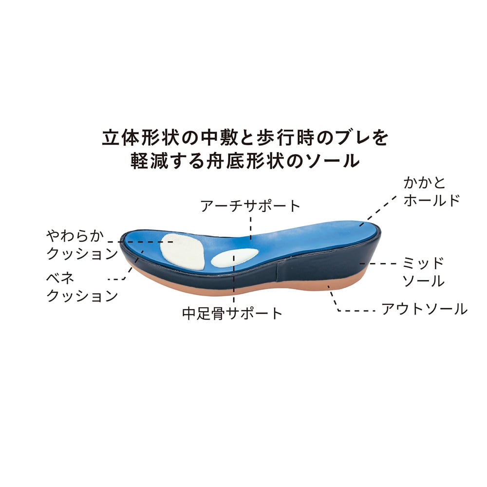 ・歩行時のブレを軽減する舟底形状のソール