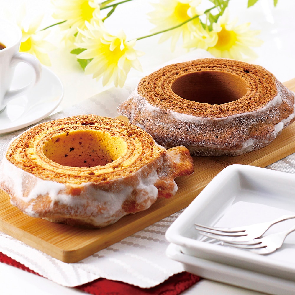 ●オレンジピール入りバウムクーヘン、コーヒーバウムクーヘン(各直径13cm)×各1個(計2個)