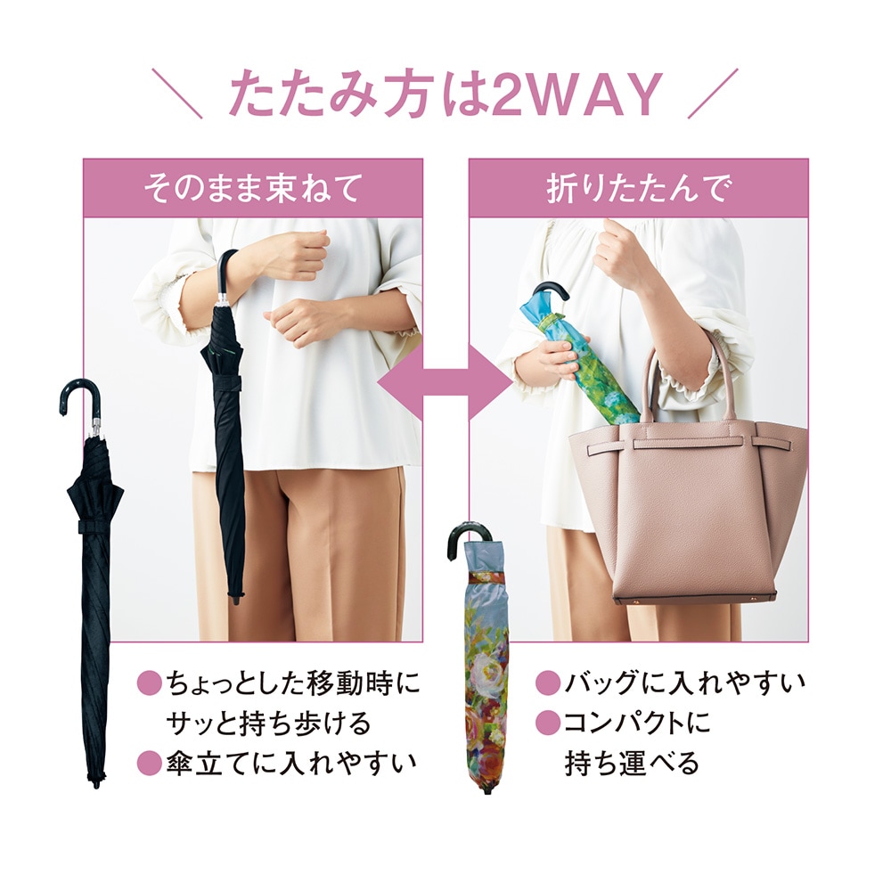 ●そのまま束ねれば、ちょっとした移動時にサッと持ち歩け、傘立てに入れやすい