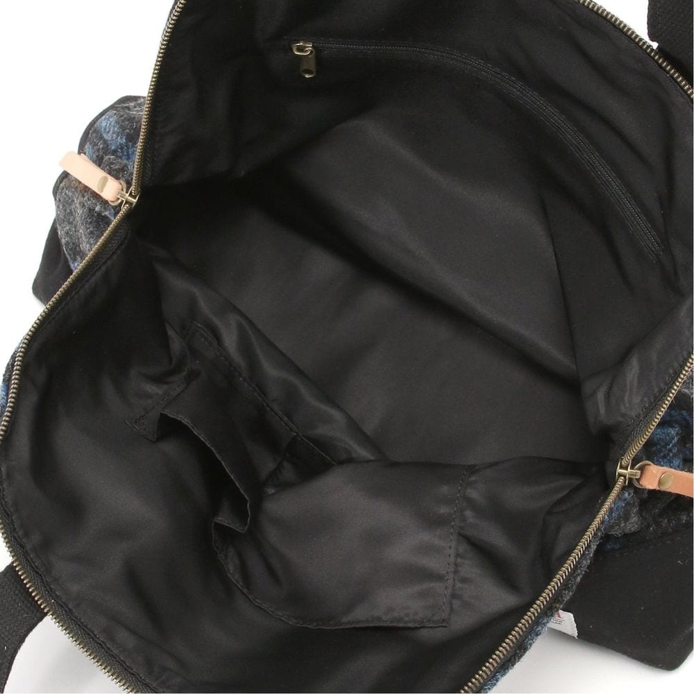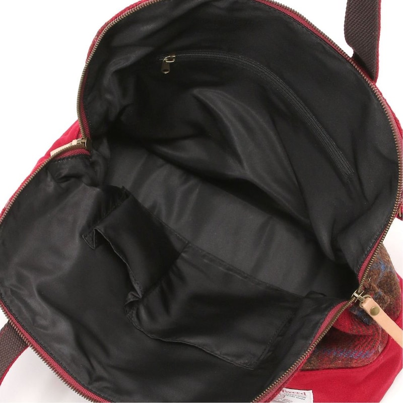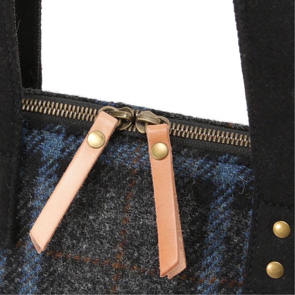 季節感高まるハリスツイードで仕上げたトートバッグ。開口部が大きく開き、荷物をスムーズに出し入れできます。シーンに合わせて使い分けができる2WAYタイプ。