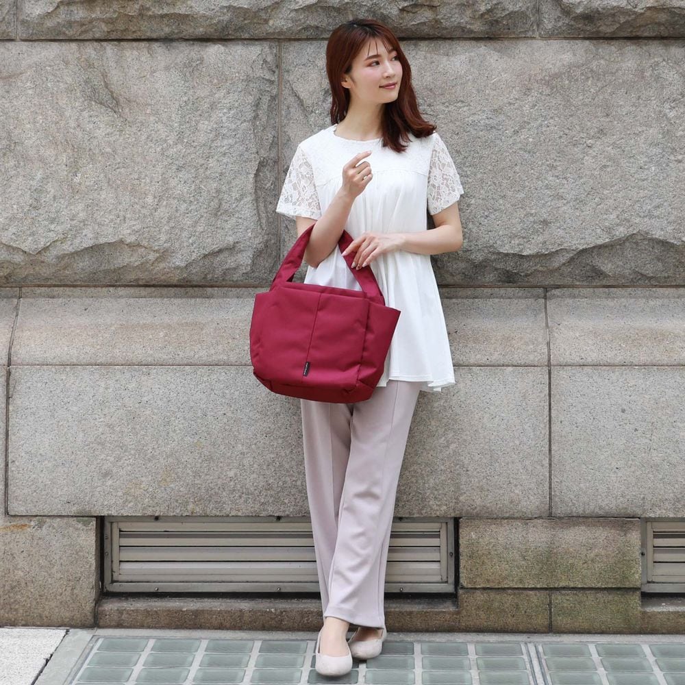 ・カジュアルながら上品見えする生地を使用したトートバッグ
