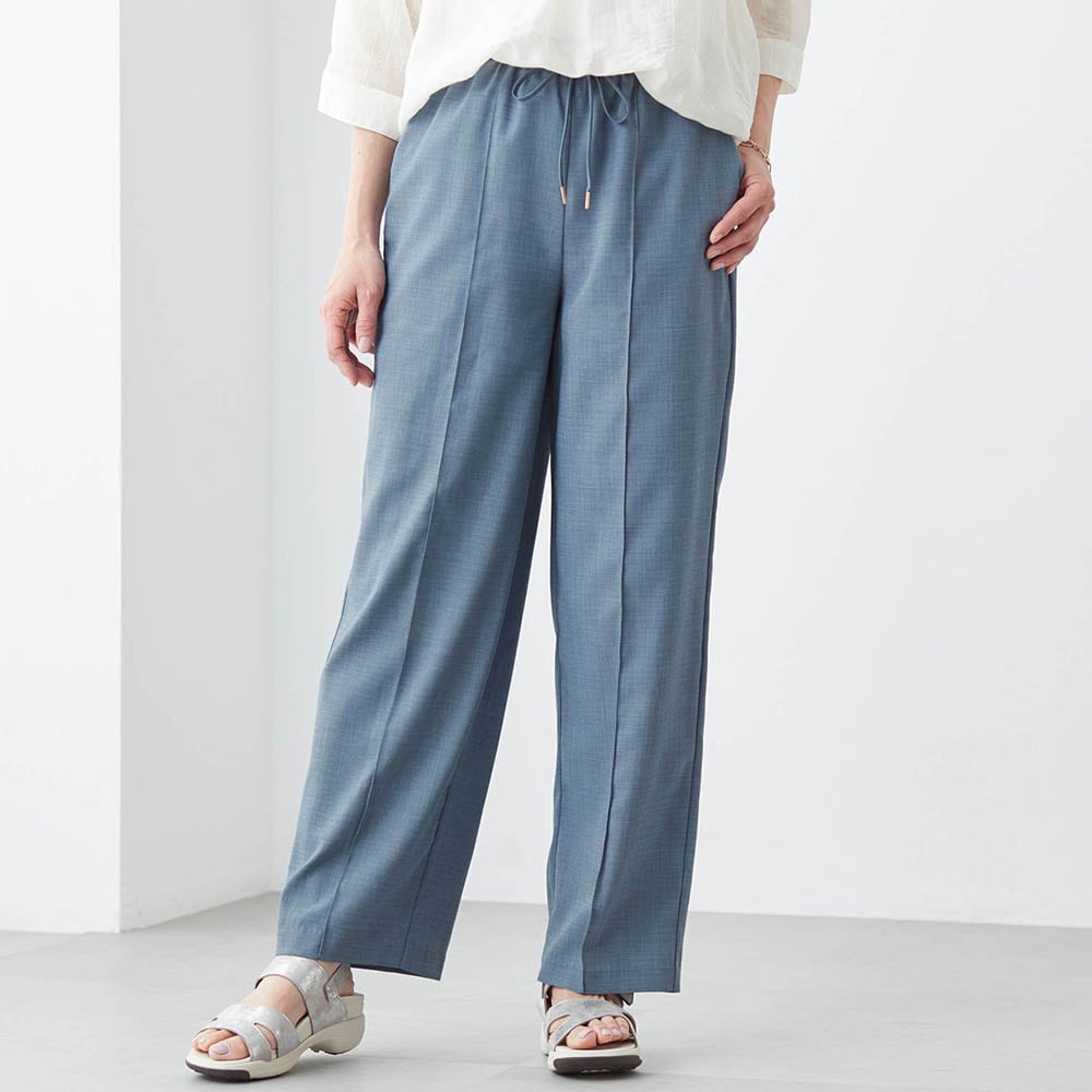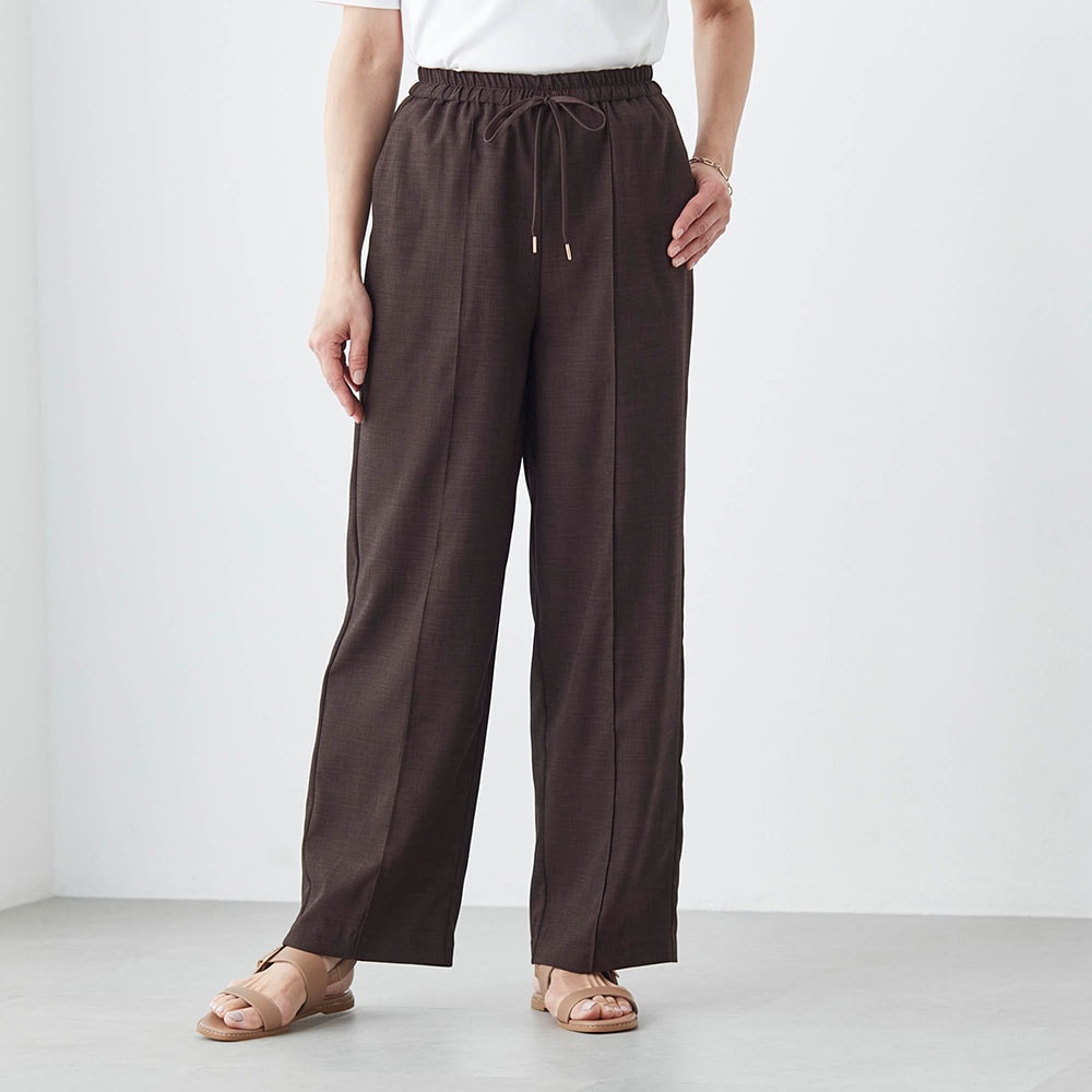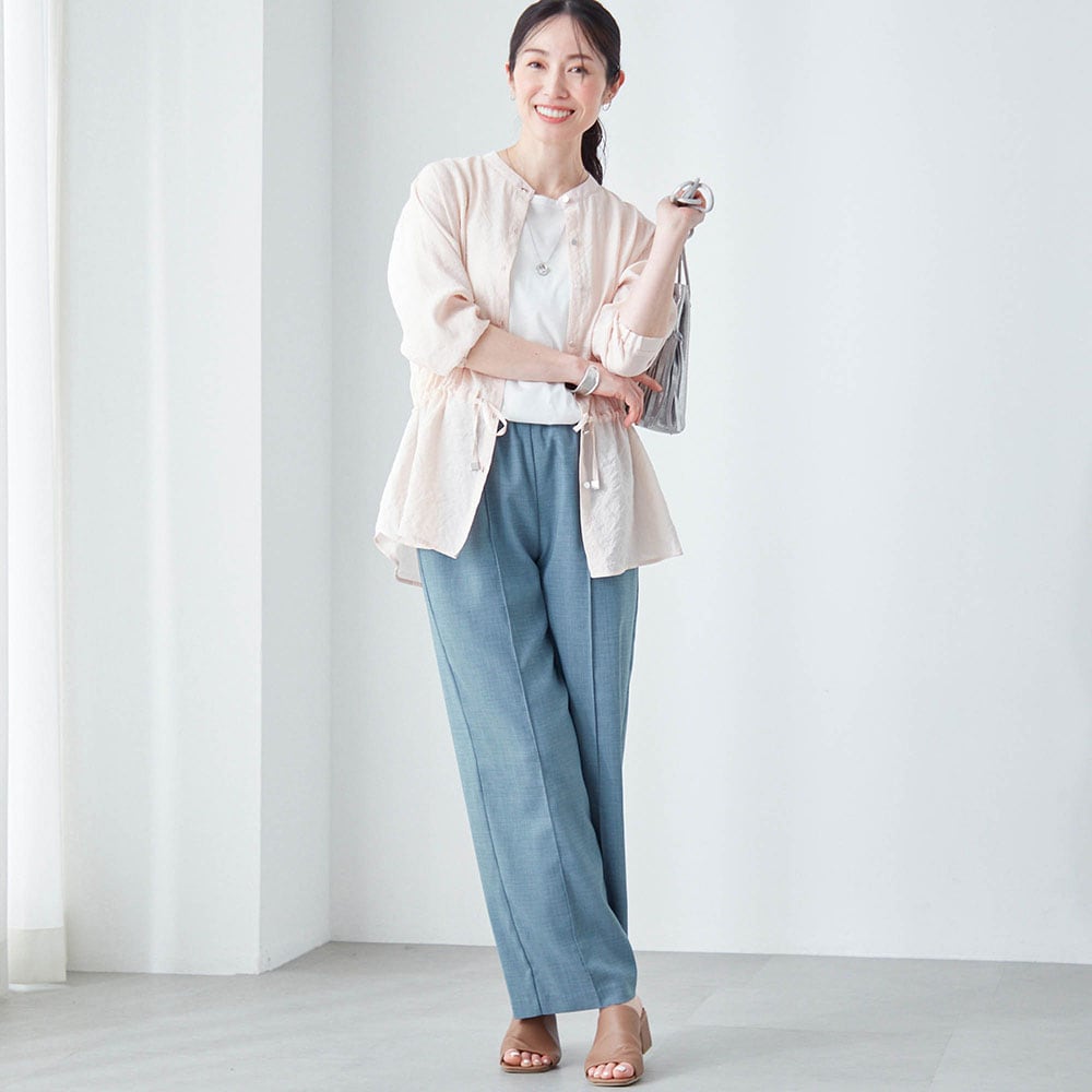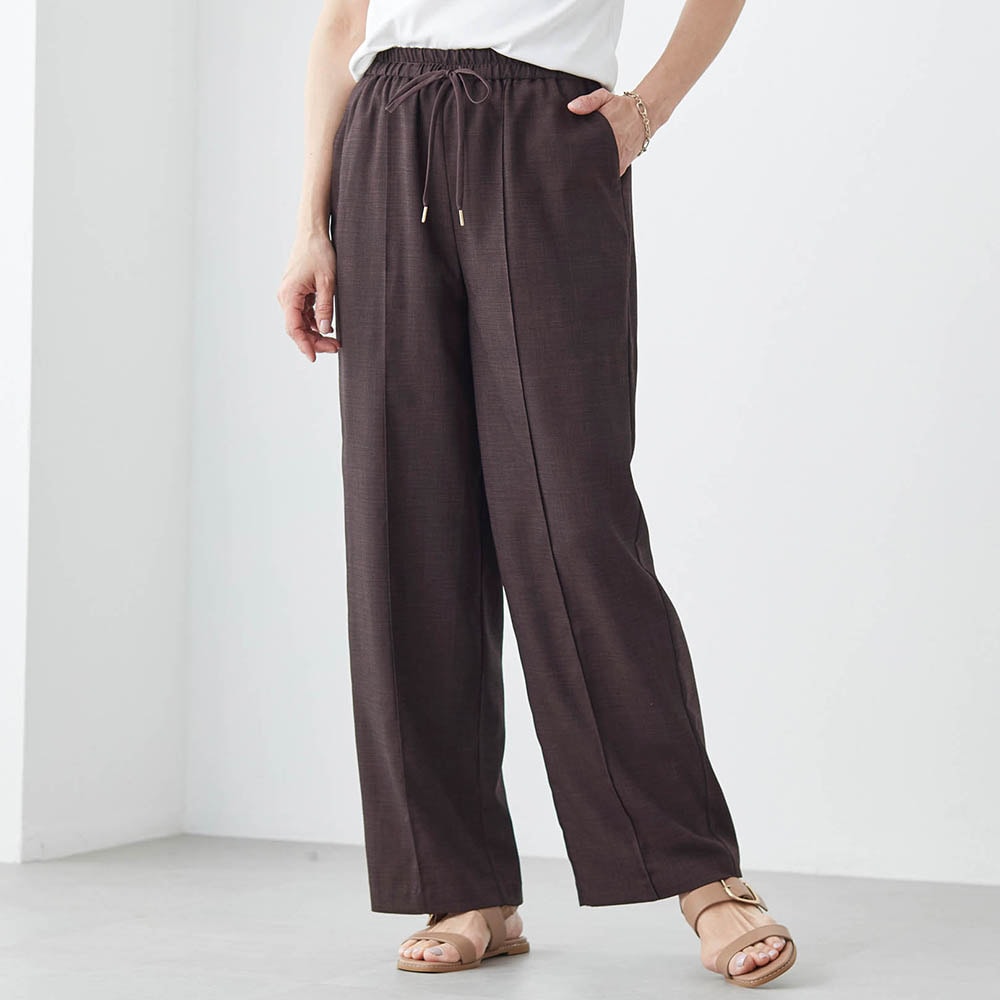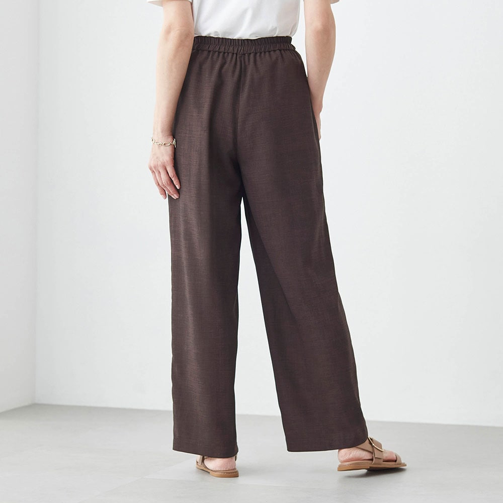 カジュアルすぎないリラックス感のある麻調素材のパンツ