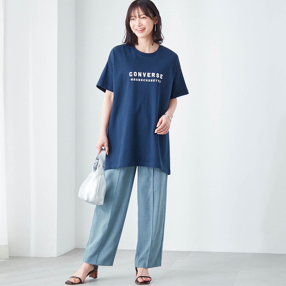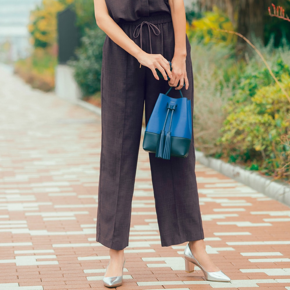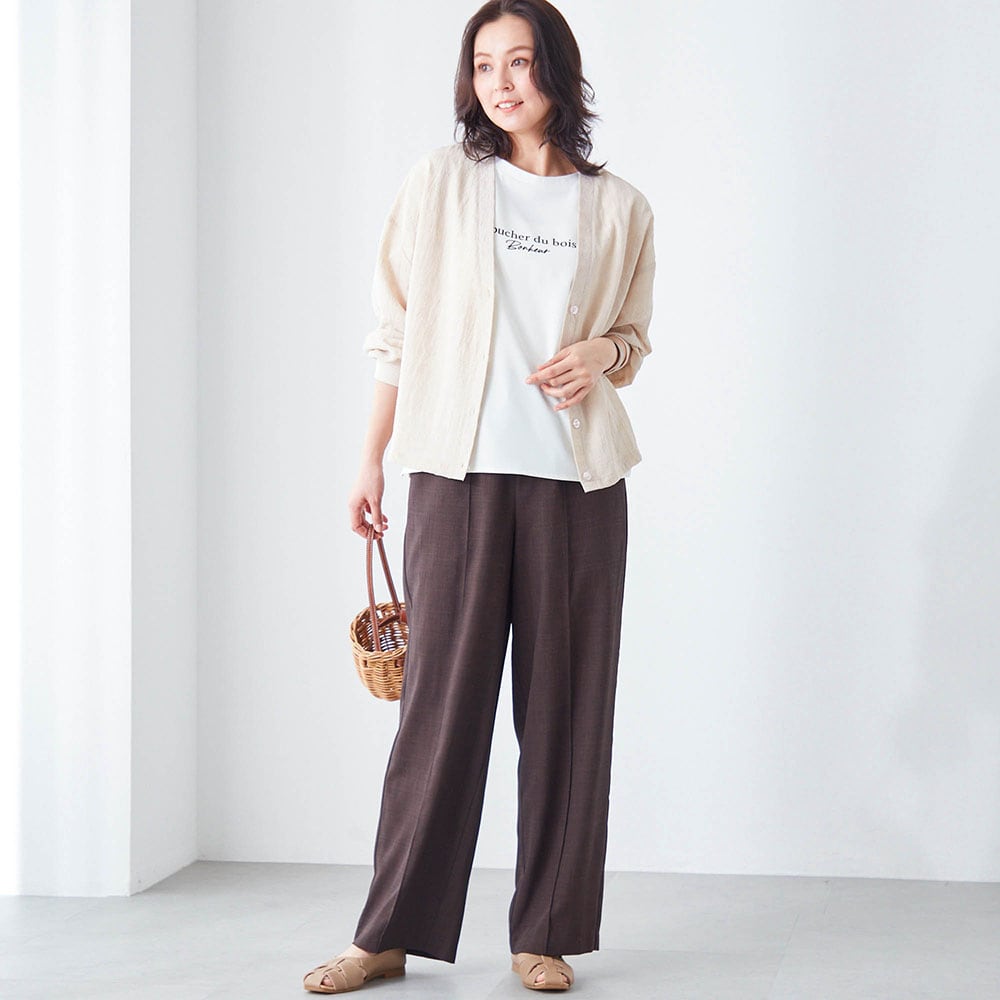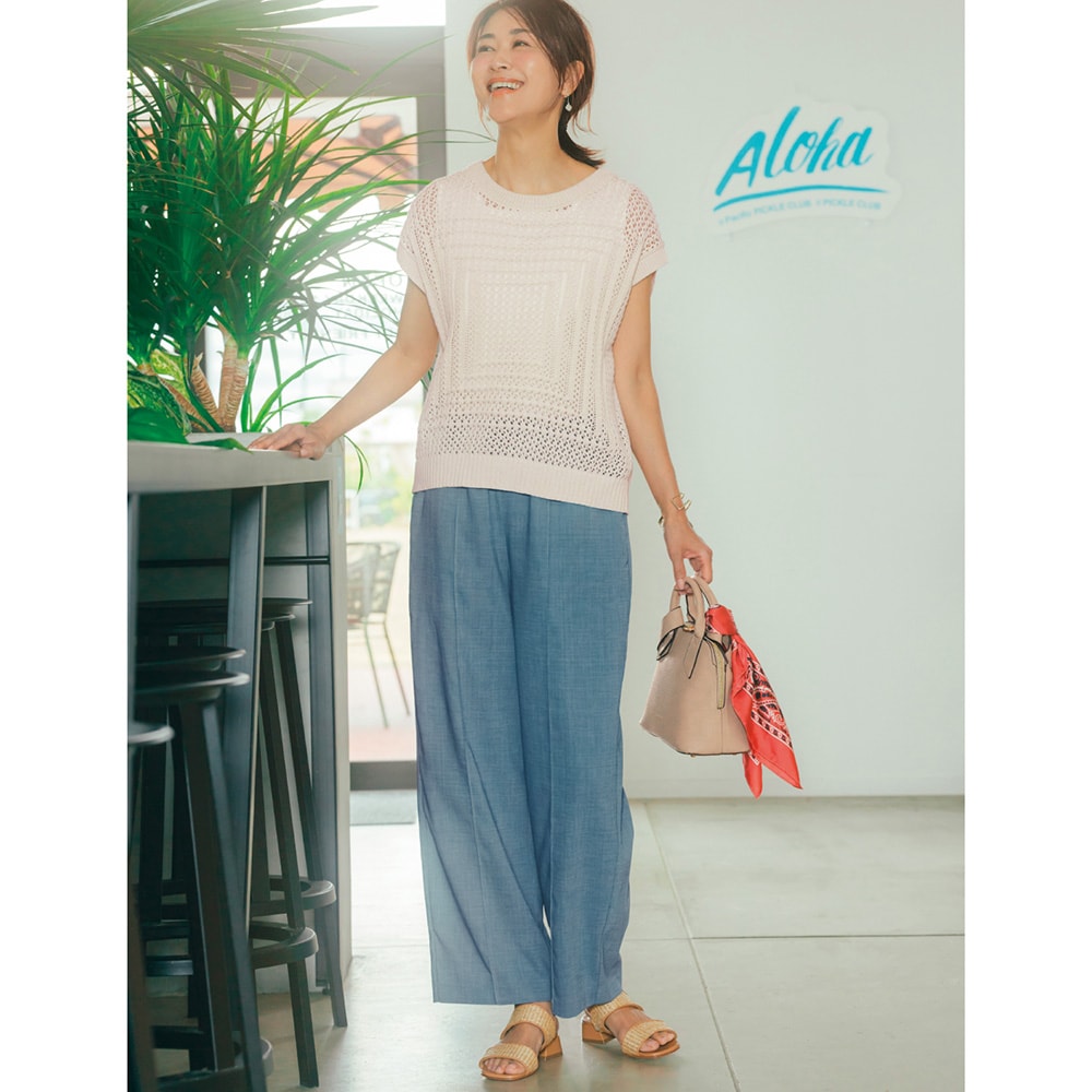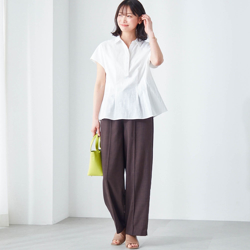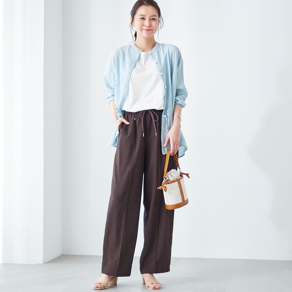 カジュアルすぎないリラックス感のある麻調素材のパンツ