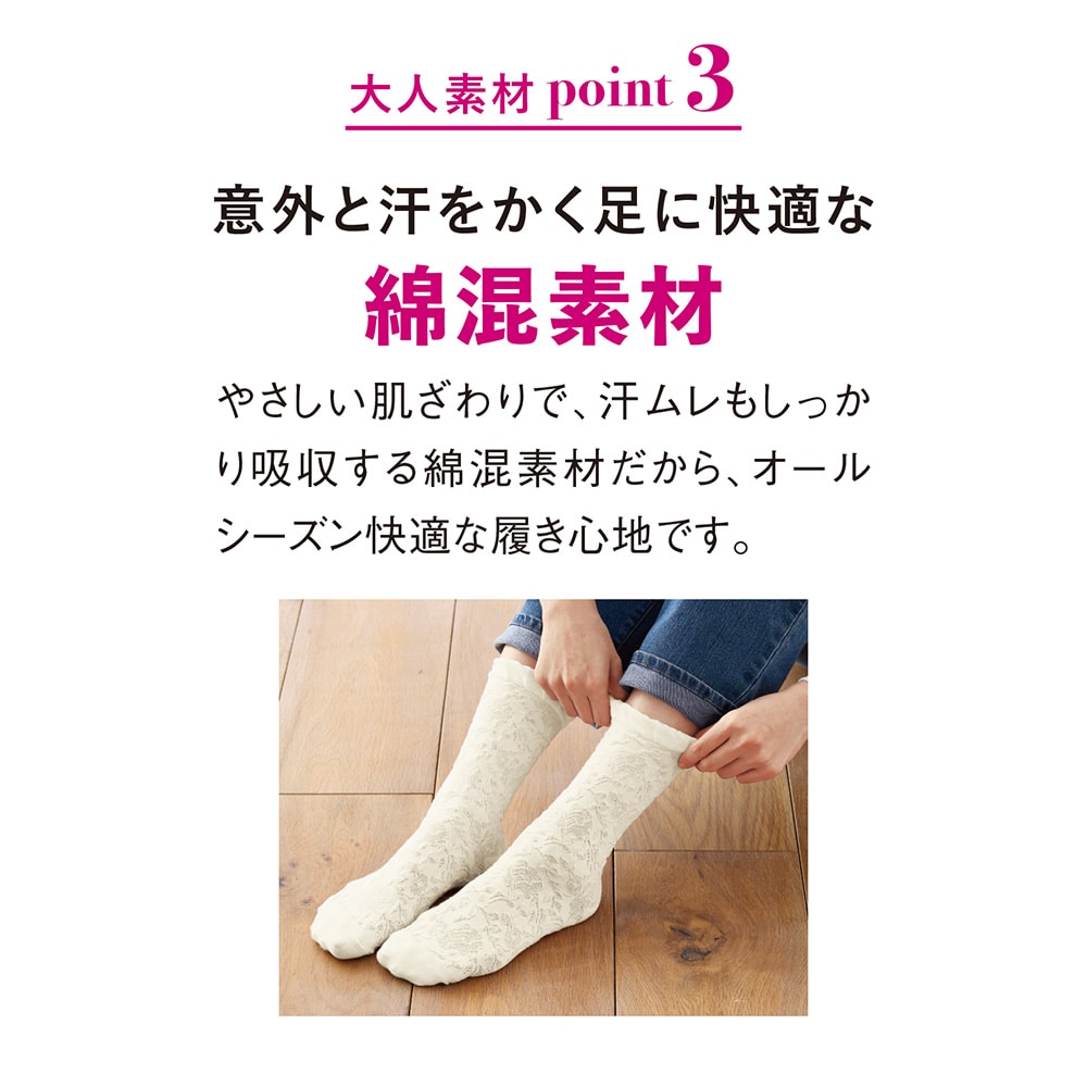 見惚れるほどのレース柄でかかとケアも叶えるソックス