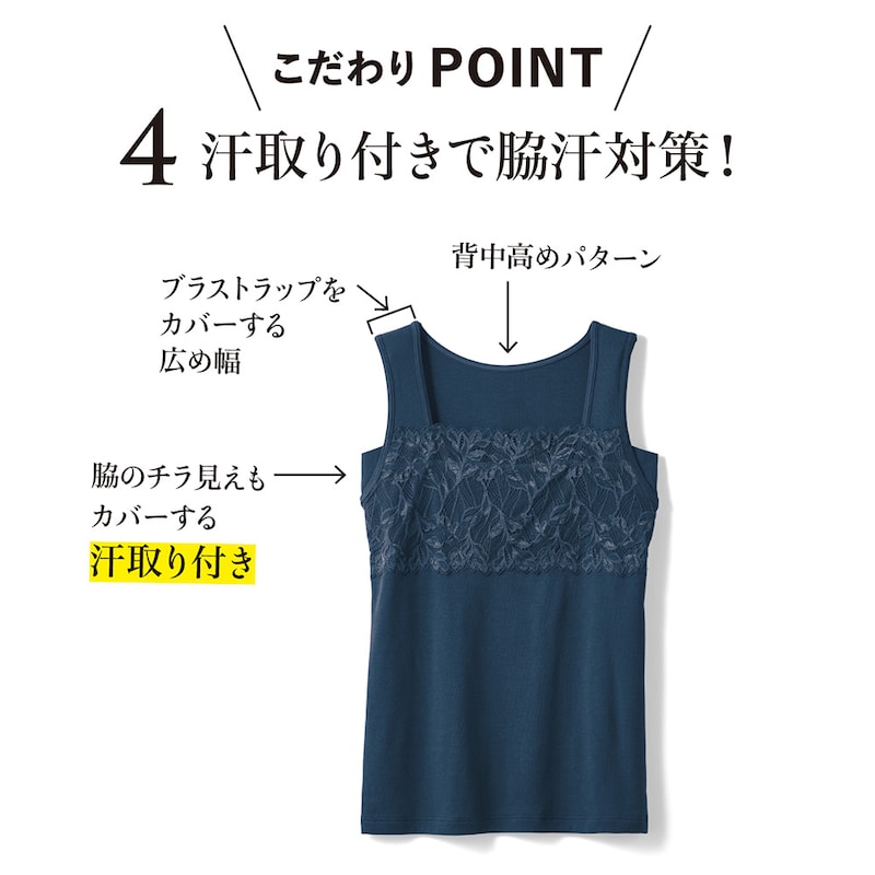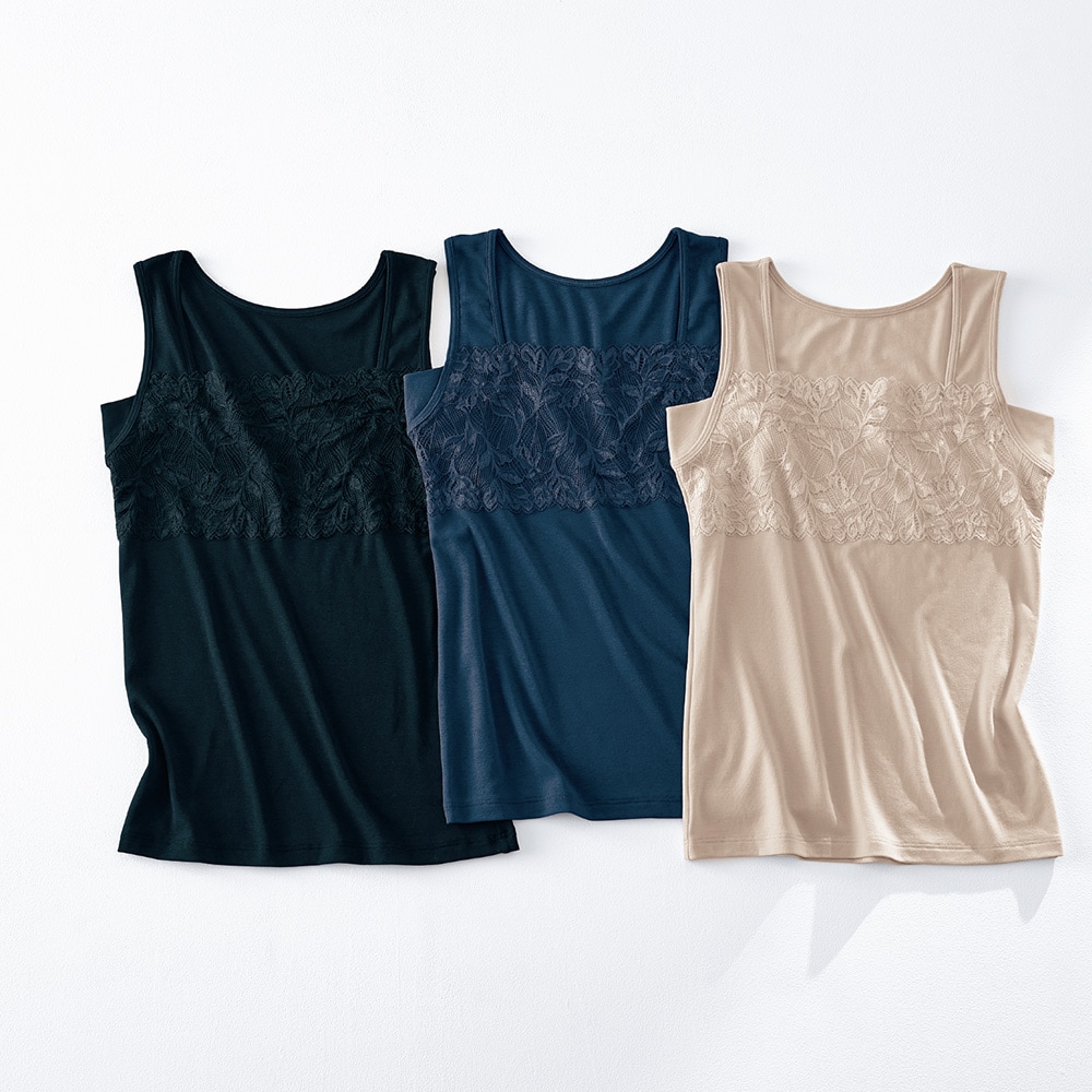 【定期お届け】[Mサイズ] 胸元レースタンクトップ(汗取り付き) :3回シリーズ
