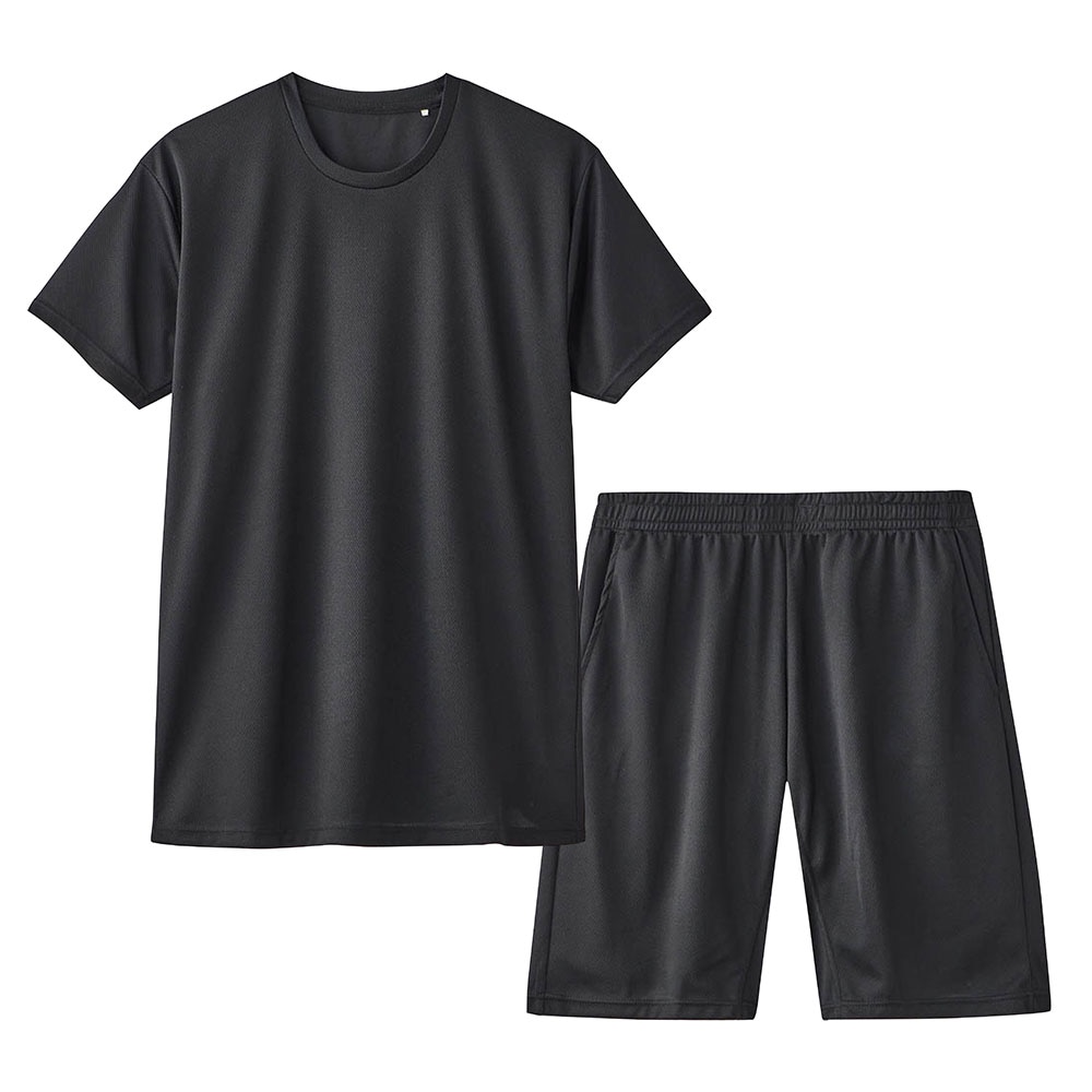 ・スタンダードなクルーネック(丸首)半袖Tシャツと、ハーフパンツのセット。