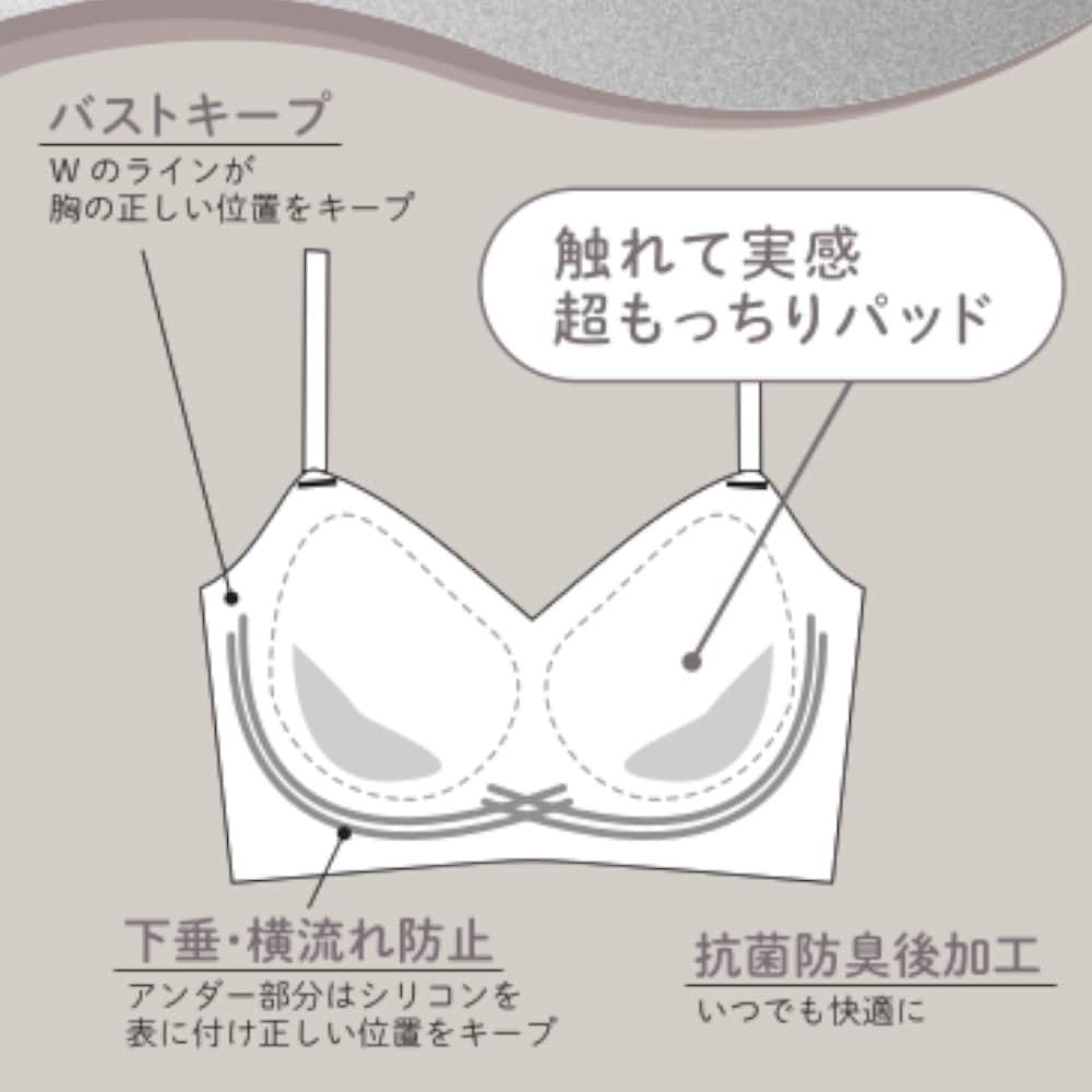・生地に内蔵されたWのシリコンラインが、バストの下垂や横流れを軽減