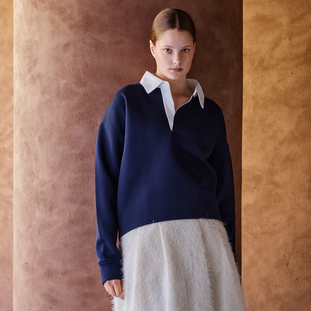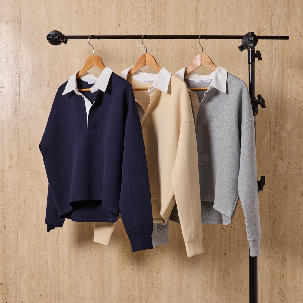 ラガーシャツの存在感を、ミニマルなフォルムで再解釈