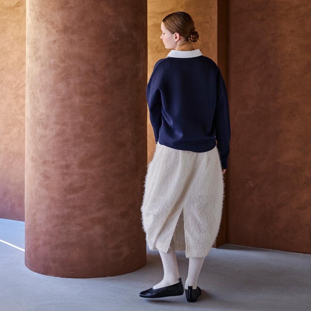 ・ダンボールニット素材を使用し、軽さとハリ感のあるモダンな風合い